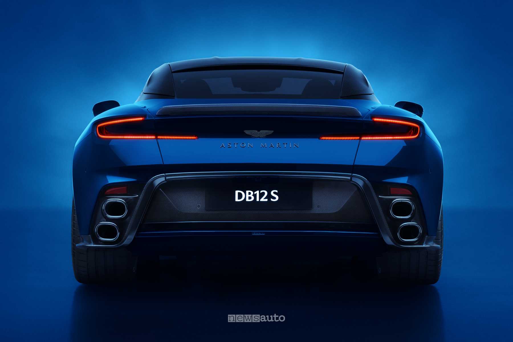 L’Aston Martin DB12 S si distingue per proporzioni da vera gran turismo: lunga 4,73 metri, larga 2,05 e alta 1,30 (1,31 per la Volante), con un passo di 2,81 metri. Il bagagliaio offre una capacità di 262 litri, che scendono a 206 nella versione scoperta con il tetto chiuso. Dal punto di vista estetico, la DB12 S si distingue per un look più aggressivo e sportivo, grazie al doppio splitter anteriore, alle nuove feritoie sul cofano e alle minigonne laterali, rifinite in nero lucido o in fibra di carbonio. Al posteriore c’è uno spoiler fisso, il diffusore aerodinamico e le due coppie sovrapposte di terminali di scarico.