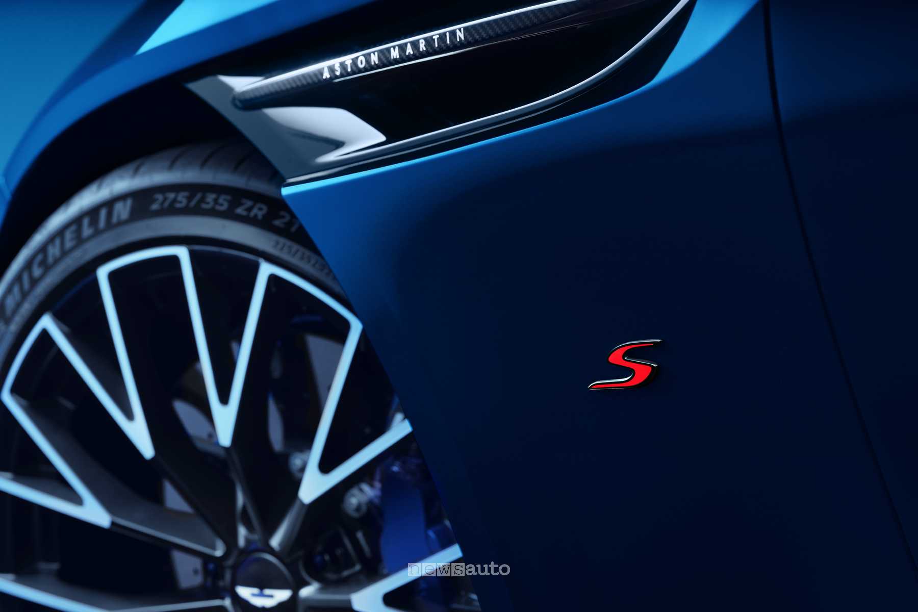Il design dell’auto si caratterizza anche per il badge “S” dedicato sui parafanghi, realizzato a mano con finitura cromata chiara o scura e inserti in vetro smaltato rosso. Infine la DB12 S monta cerchi in lega da 21 pollici con pneumatici Michelin Pilot Sport 5 S (275/35 ZR21 davanti e 325/30 ZR21 dietro).