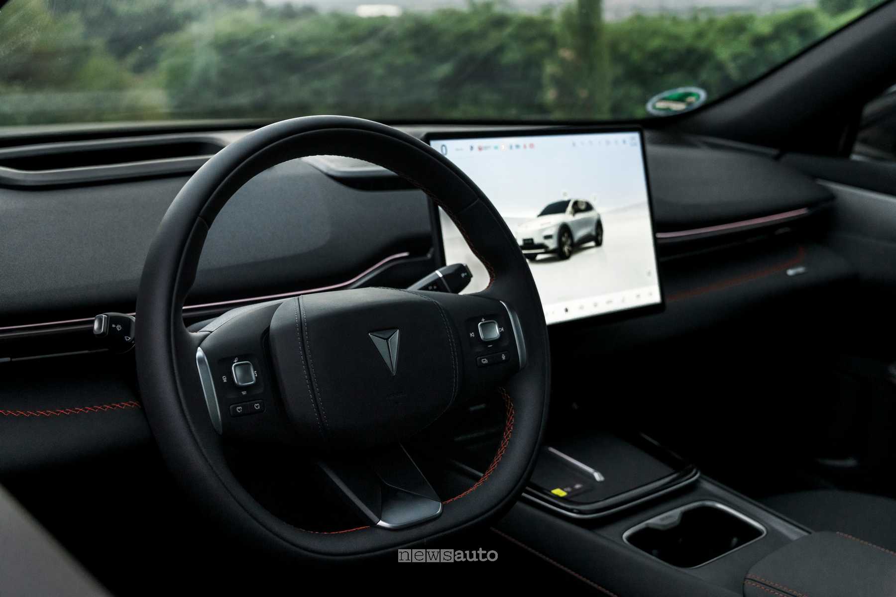 All’interno, la vettura adotta un’impostazione minimalista con un display centrale touchscreen da 15,6 pollici orientabile, basato su chipset Qualcomm Snapdragon 8155, compatibile con Apple CarPlay e Android Auto e aggiornabile via OTA. È presente un head-up display con realtà aumentata, oltre a un sistema di telecamere a 360 gradi e ai principali ADAS di Livello 2, tra cui cruise control adattivo, mantenimento di corsia e frenata automatica d’emergenza.