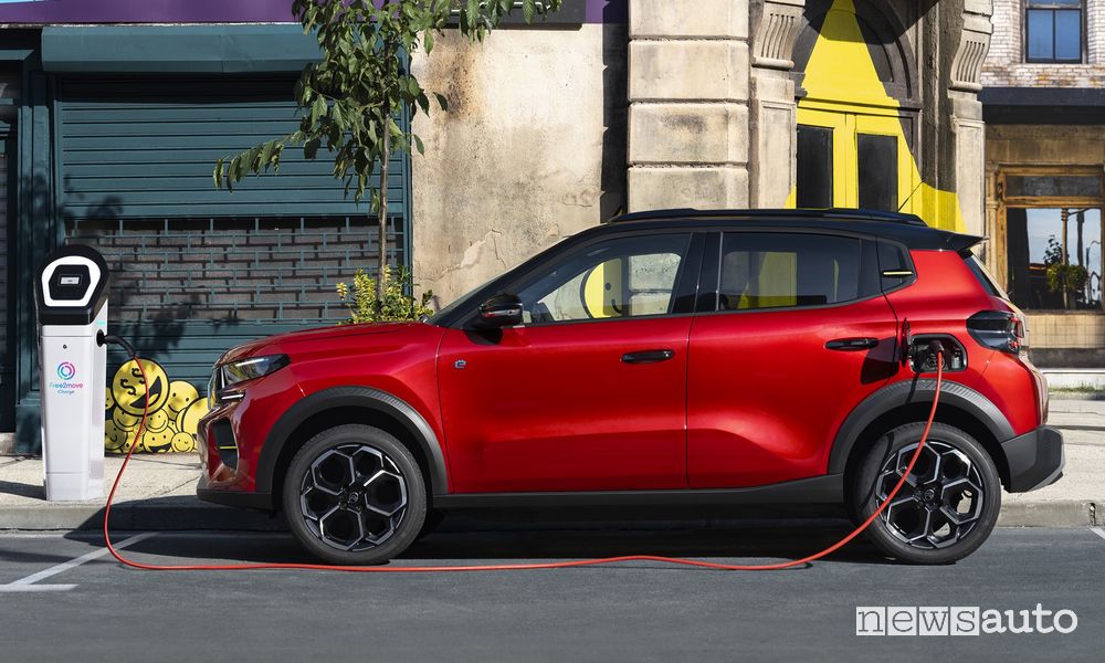 La Citroen C3 di quarta generazione segna il debutto della versione completamente elettrica, denominata ë-C3, che mira a rendere più accessibile il mercato delle auto elettriche di segmento B con prezzi competitivi. Questo modello sarà lanciato all’inizio del 2024; il prezzo di partenza in Italia sarà di 23.900 euro o da 49 euro al mese con i nuovi incentivi, mentre nel 2025 scenderà sotto la soglia dei 19.900 euro con il lancio di una versione entry level con batteria da circa 30 kWh e un’autonomia di 200 km. Nel corso del 2024 arriverà anche una versione con motore termico benzina mild-hybrid.