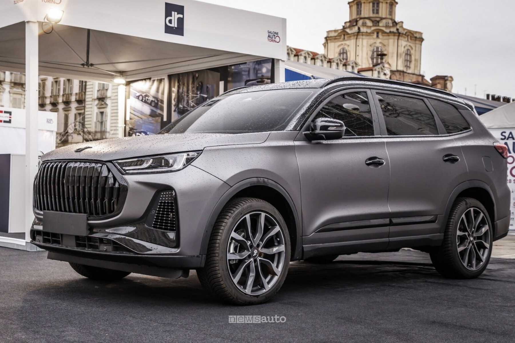 La DR 6 è l’evoluzione della DR 6.0, derivata dalla Chery Tiggo 7 Pro, lunga 450 cm. Rispetto alla versione precedente aggiorna alcuni dettagli estetici come fari e frontale.