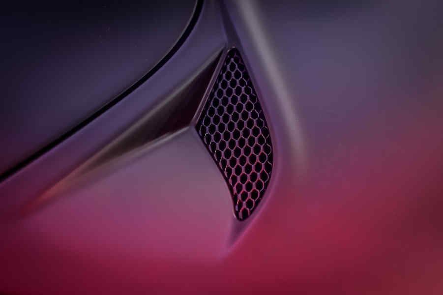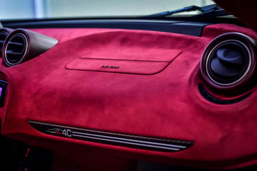 Alfa Romeo 4C La Furiosa personalizzata da Garage Italia di Lapo Elkann esposta Salone Internazionale dell’auto di Dubai 2015, caratterizzata da una verniciatura speciale e da interni in Alcantara rosso.