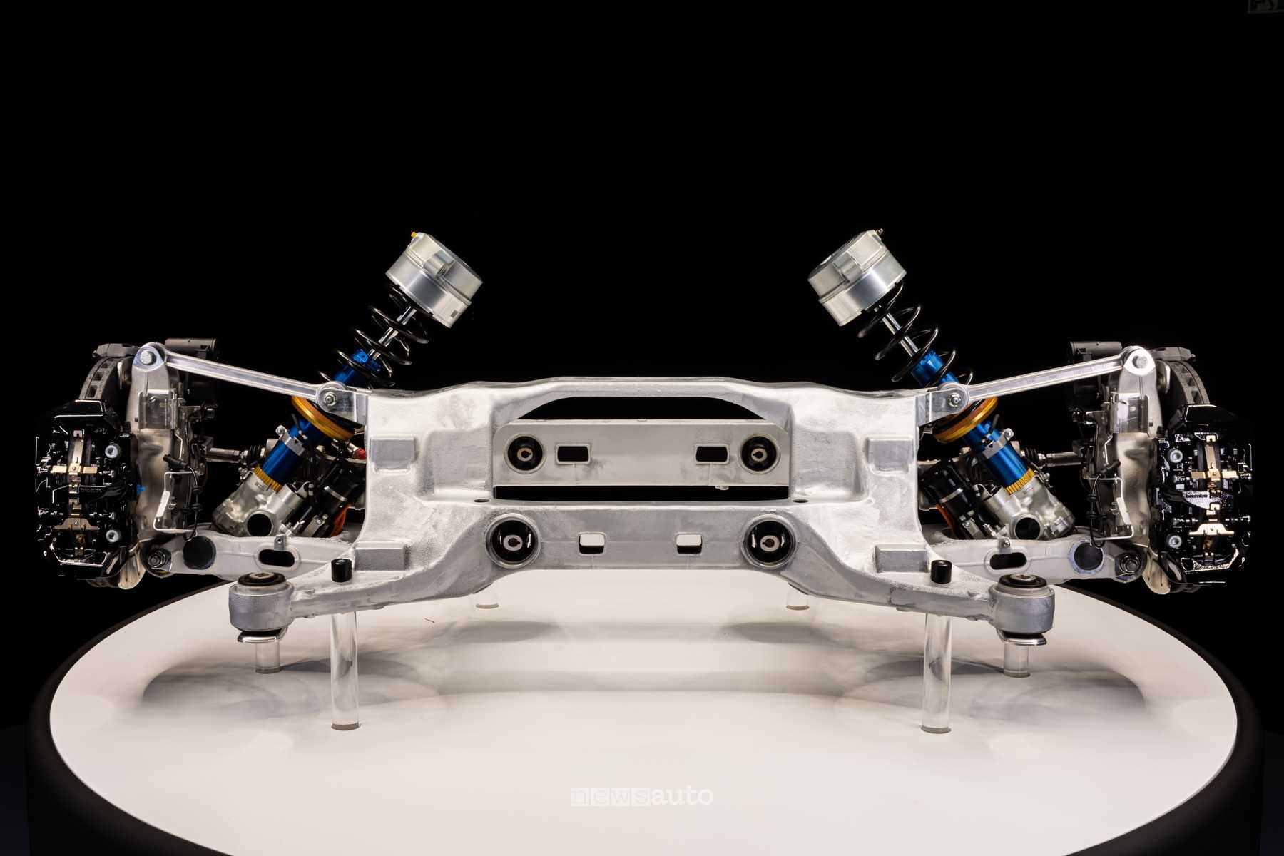 Tutte le immagini dei componenti tecnici della Ferrari Elettrica: telaio, motori, batteria e sospensioni.