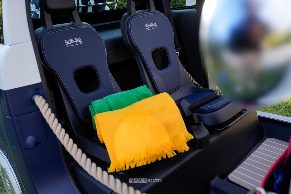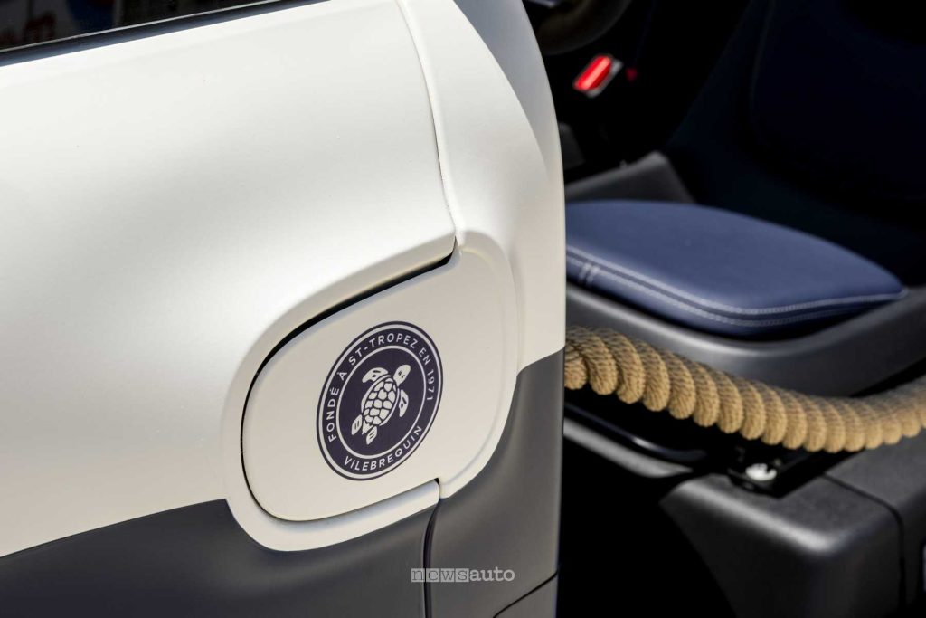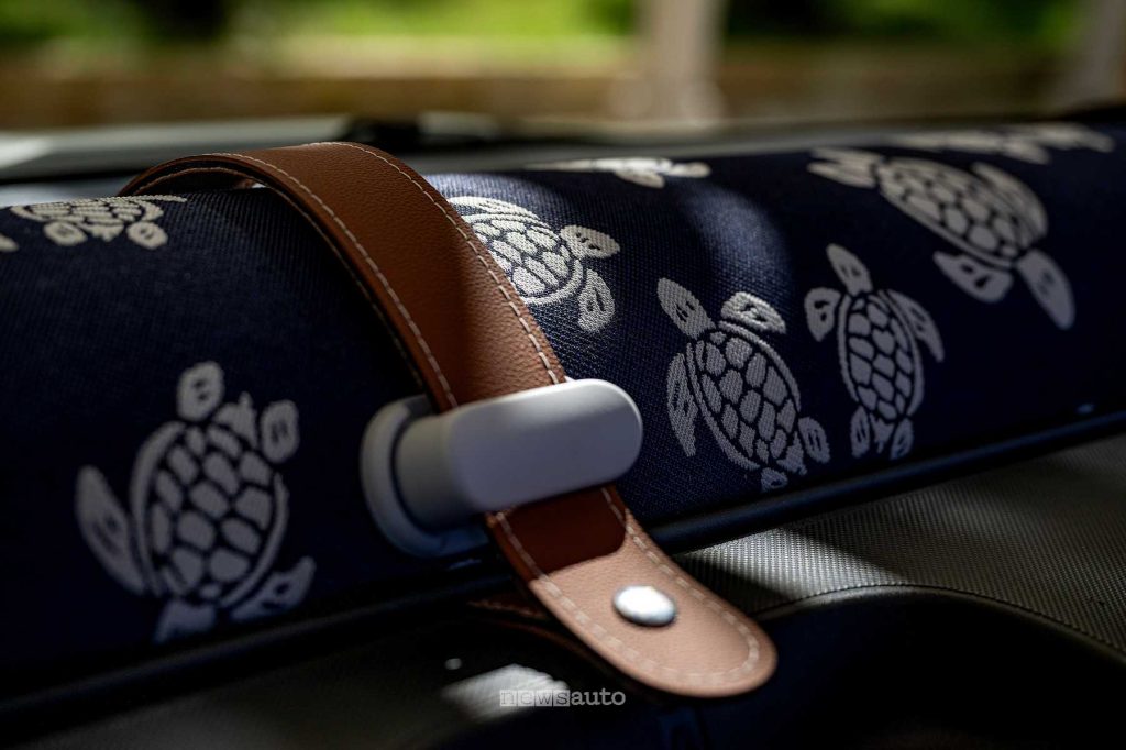 Caratterizzata da un design rétro ispirato al mondo nautico, vanta una livrea bicolore bianco/blu, capote a forma di cappello da sole, portapacchi e doccetta posteriore. Personalizzata a mano, offre interni con dettagli in teak, sedili ricamati e accessori esclusivi come la Dolcevita Box e un portachiavi con la tartaruga simbolo di Vilebrequin.