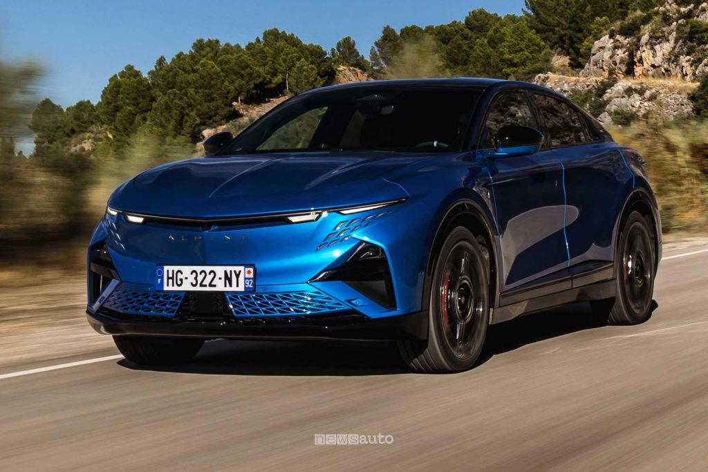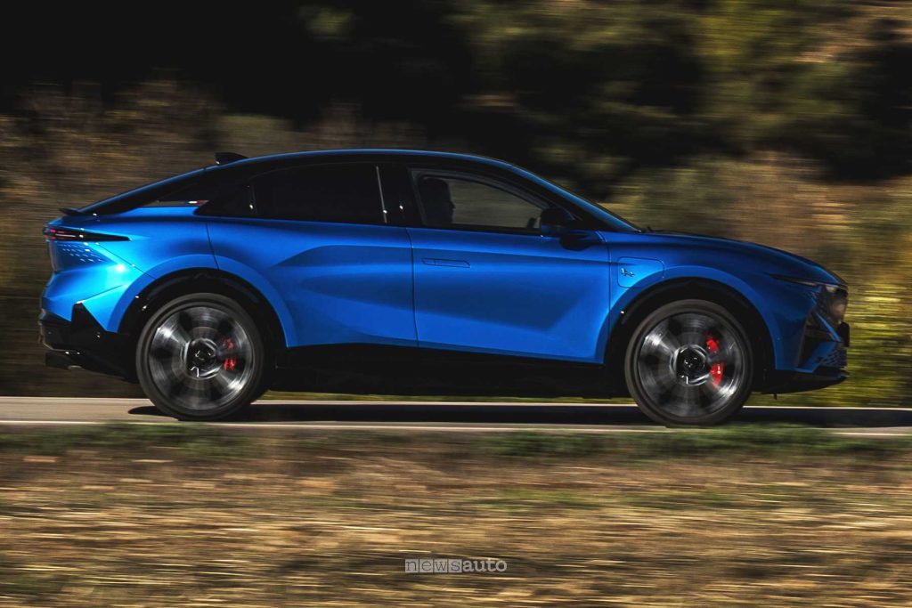 Il design fastback è molto ricercato: linee pulite, dettagli aerodinamici funzionali e una firma luminosa originale le conferiscono un aspetto moderno e sportivo. Le dimensioni sono più generose rispetto alle Alpine tradizionali, ma la forma slanciata e i cerchi da 20 o 21 pollici mantengono un carattere deciso.