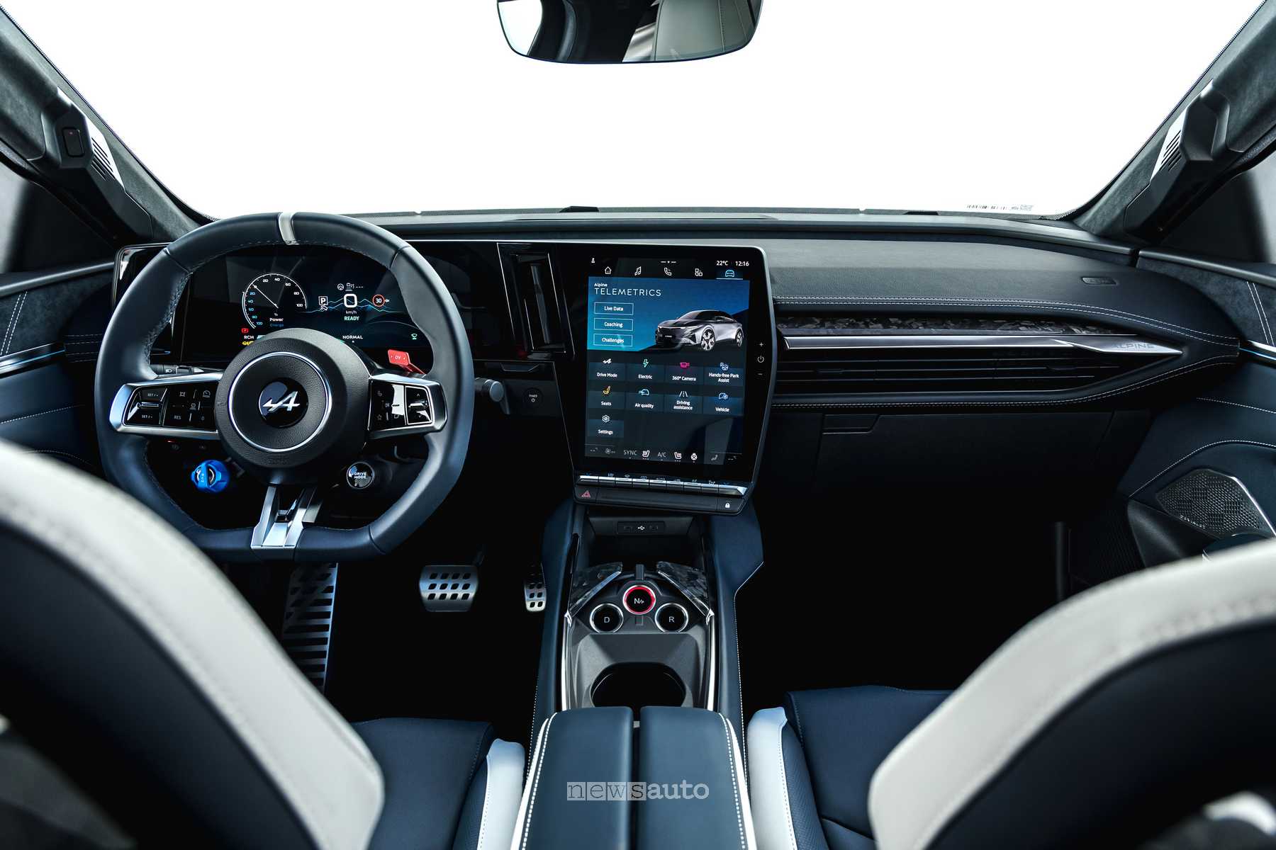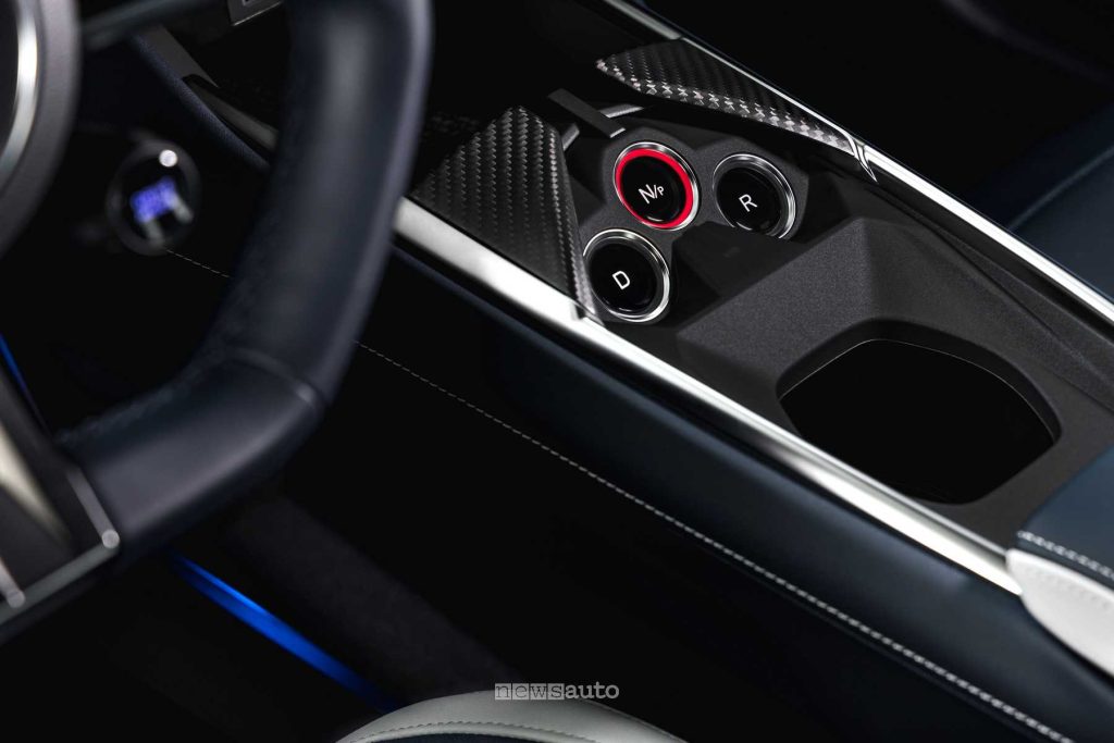 Gli interni puntano su sportività e qualità percepita, con materiali soft-touch, illuminazione blu e sedili sportivi riscaldati. Il conducente ha due grandi display e un volante con comandi dedicati alla rigenerazione e al boost di potenza, utile per ottenere accelerazioni ancora più brillanti.