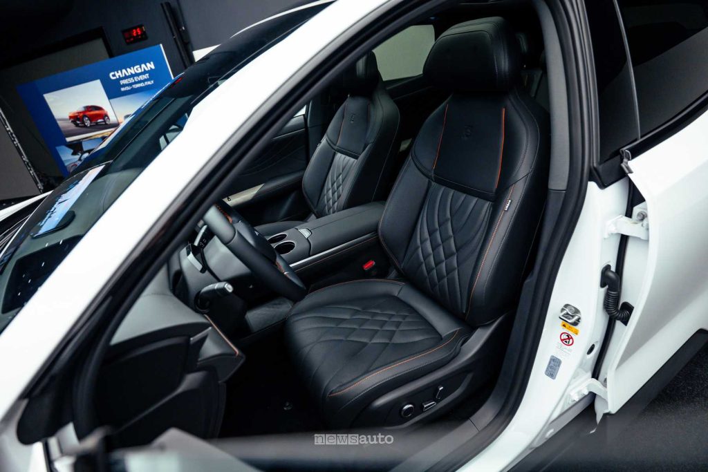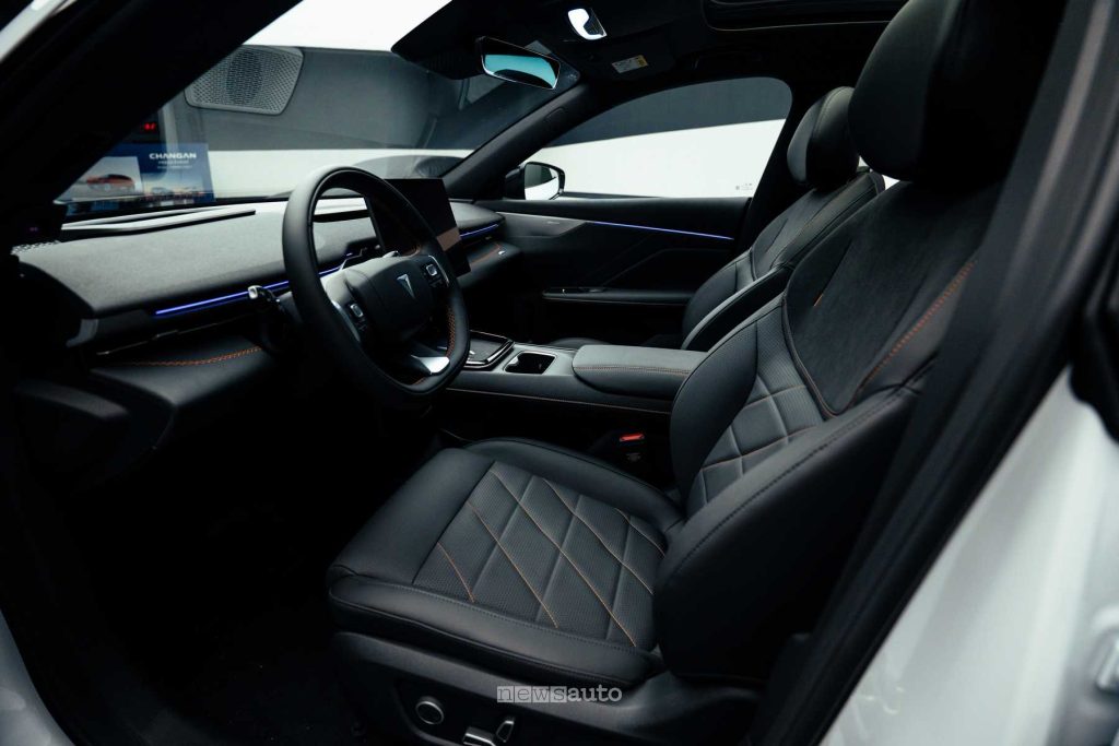 La Changan Deepal S07 si colloca invece nel segmento D, con dimensioni più generose (4,75 metri di lunghezza) e un’impostazione pensata per il mercato europeo. Offre un abitacolo minimalista con display centrale da 15,6 pollici, head-up display in realtà aumentata, ADAS di Livello 2 e una dotazione orientata al comfort, con tetto panoramico e sedili regolabili elettricamente.