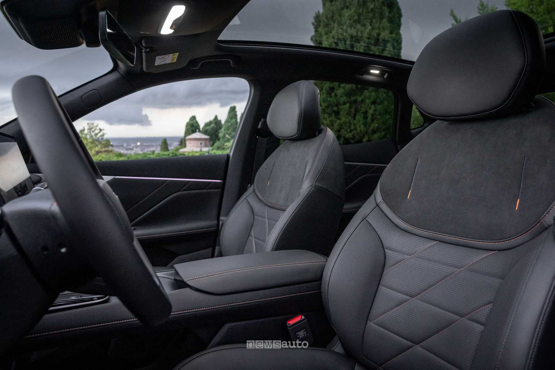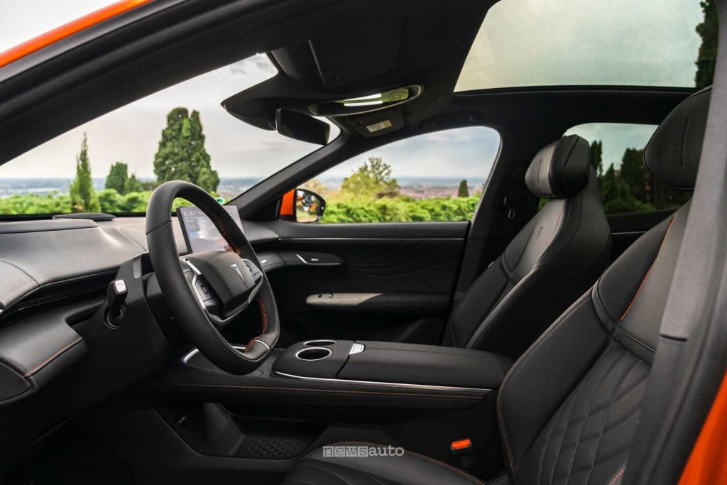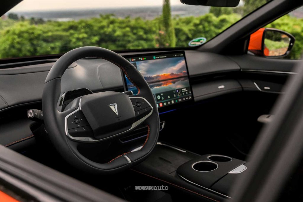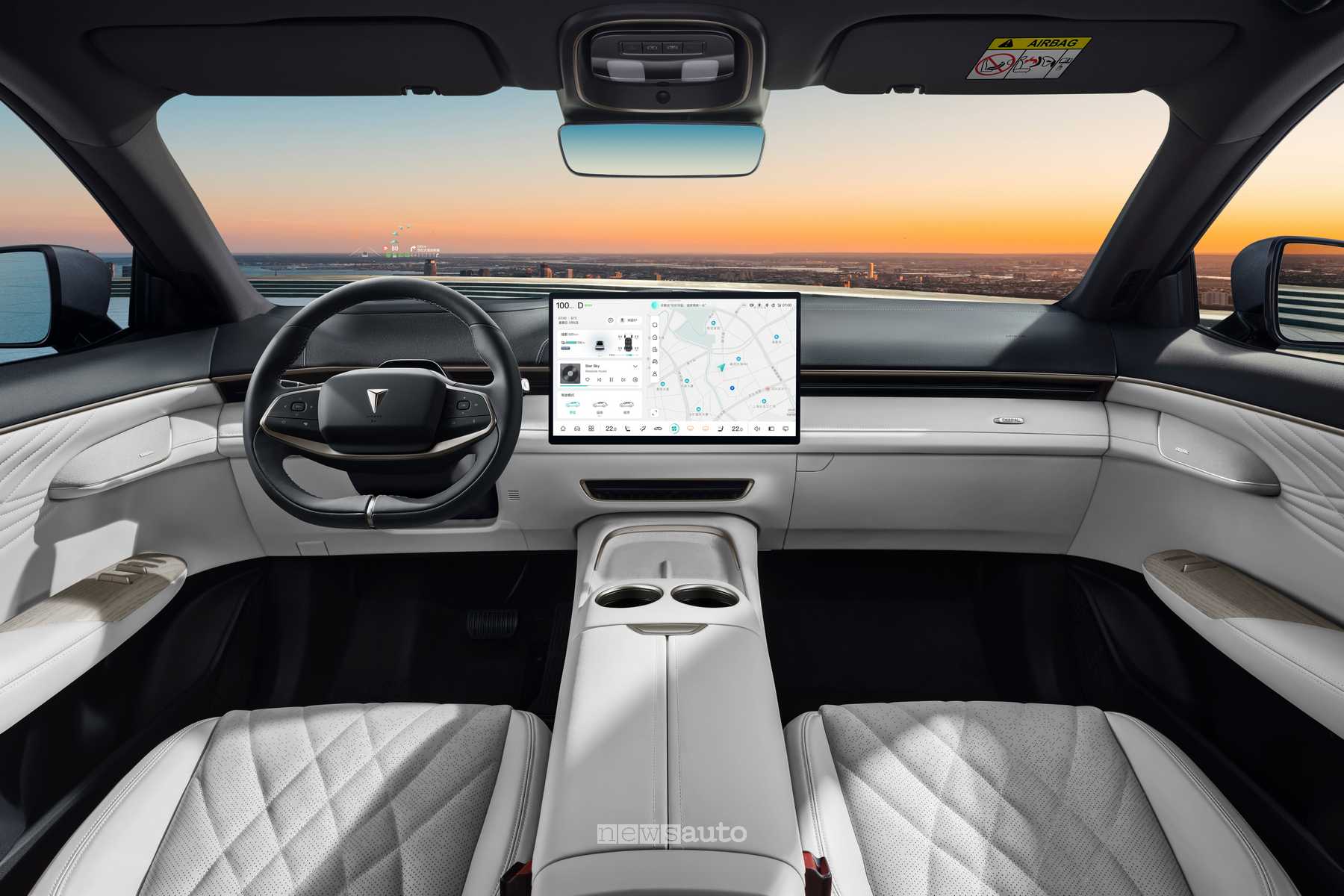 L’abitacolo propone un display centrale orientabile da 15,4 pollici, head-up display con realtà aumentata a seconda delle versioni e un sistema infotainment aggiornabile via OTA.