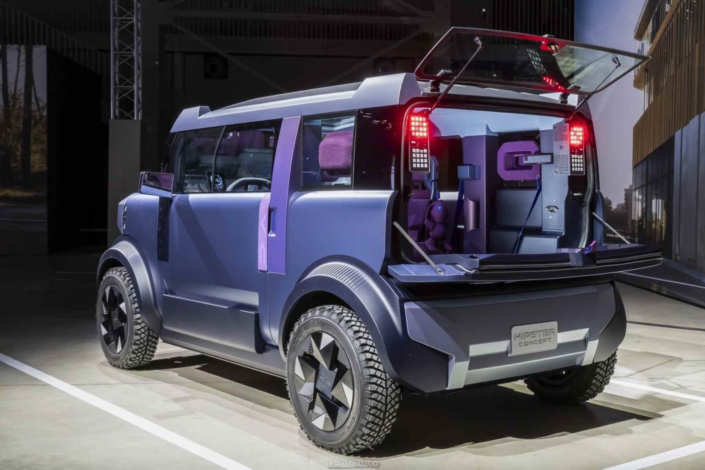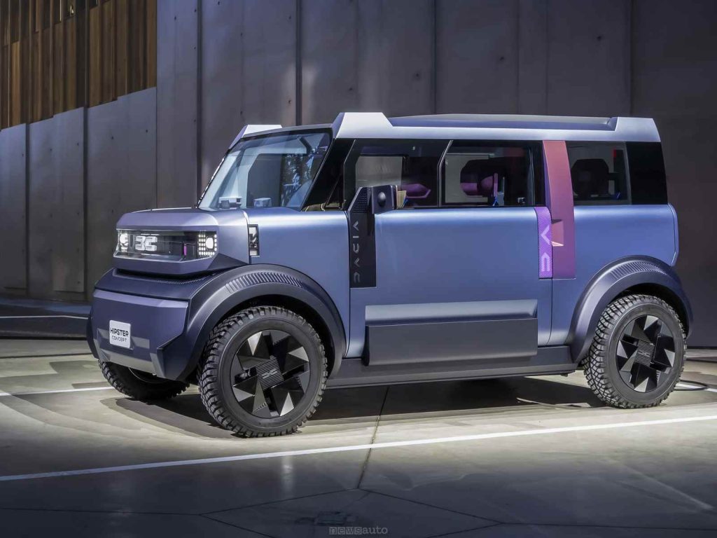 Dacia Hipster Concept è un prototipo di veicolo elettrico compatto, con quattro posti e bagagliaio, pensato per rendere la mobilità elettrica accessibile e funzionale.