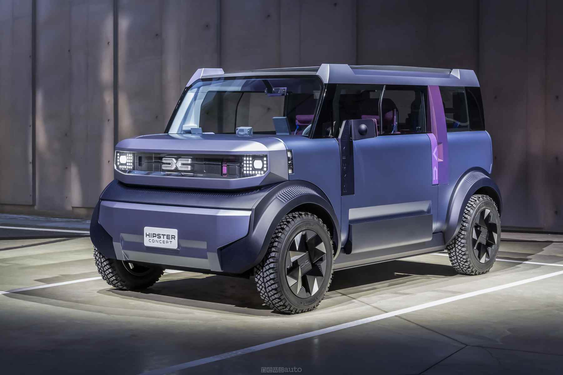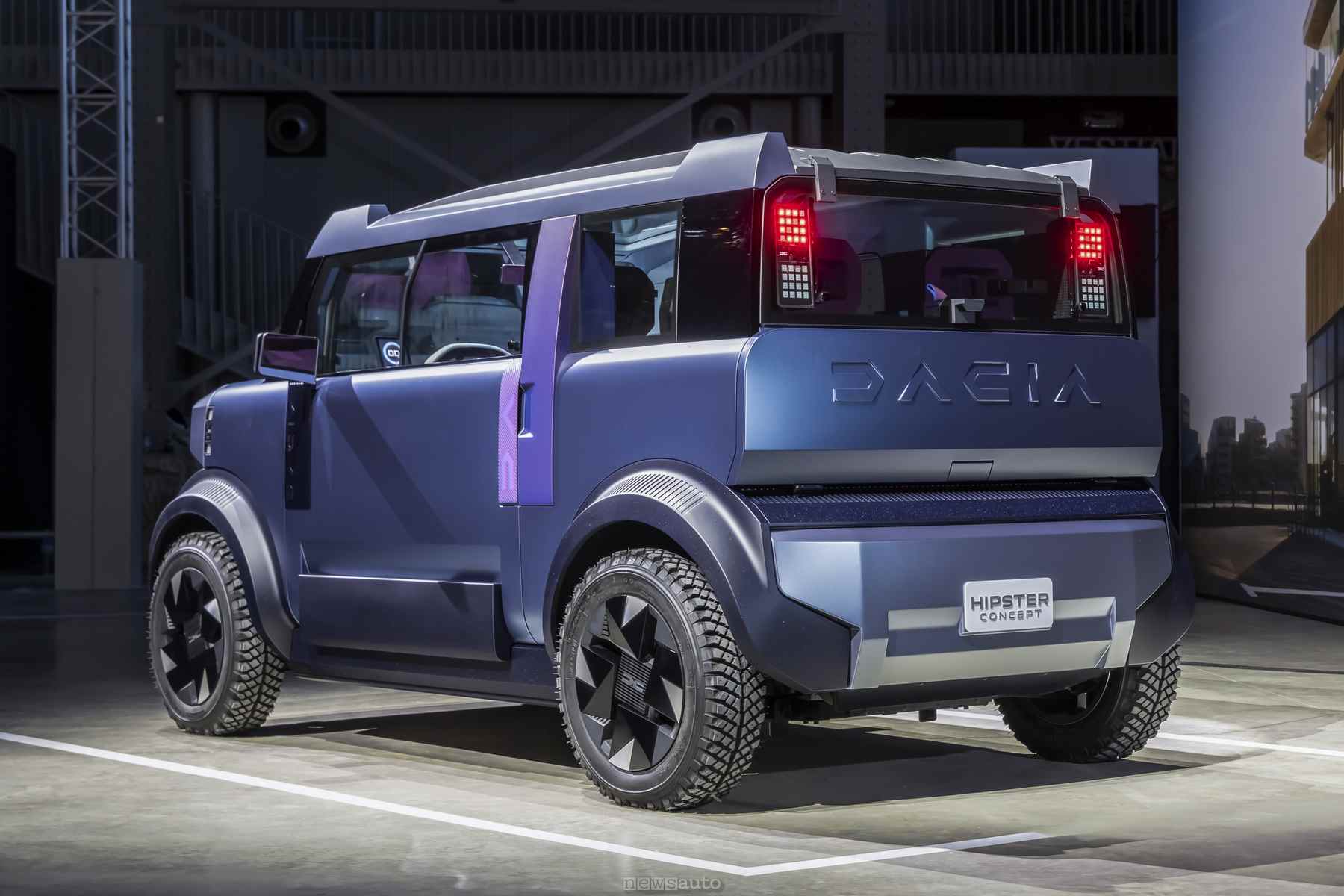Dacia Hipster Concept è un prototipo di veicolo elettrico compatto, con quattro posti e bagagliaio, pensato per rendere la mobilità elettrica accessibile e funzionale.