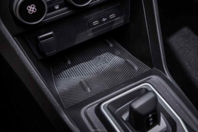 La Sandero Stepway inoltre si caratterizza per una fascia nera opaca tra paraurti e fari posteriori, mentre le protezioni in Starkle sui passaruota e sottoscocca utilizzano plastica riciclata e offrono resistenza ai graffi.