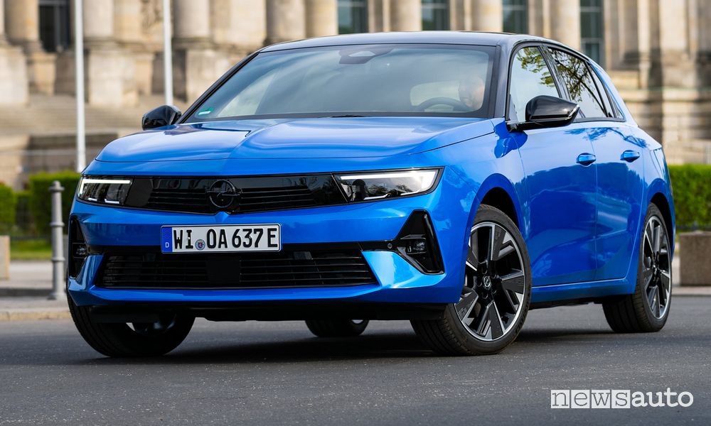 La nuova Opel Astra Electric è in vendita anche con la motorizzazione 100% elettrica, disponibile sulla berlina 5 porte e sulla carrozzeria station wagon Sports Tourer. Il motore elettrico sviluppa una potenza di 115 kW/156 CV e 270 Nm di coppia massima. L’Astra è equipaggiata con una batteria agli ioni di litio da 54 kWh, che è posizionata sotto il pianale.