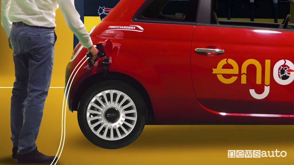 Enjoy di Eni è uno dei servizi di car sharing più diffusi in Italia, presente principalmente nelle grandi città con flotte composte da Fiat 500. Il servizio ha debuttato a Milano alla fine del 2013 ed è arrivato a Roma nel giugno 2014. Dal 2021 la flotta ha subito un progressivo rinnovamento con l’introduzione della Fiat 500 a motorizzazione ibrida.