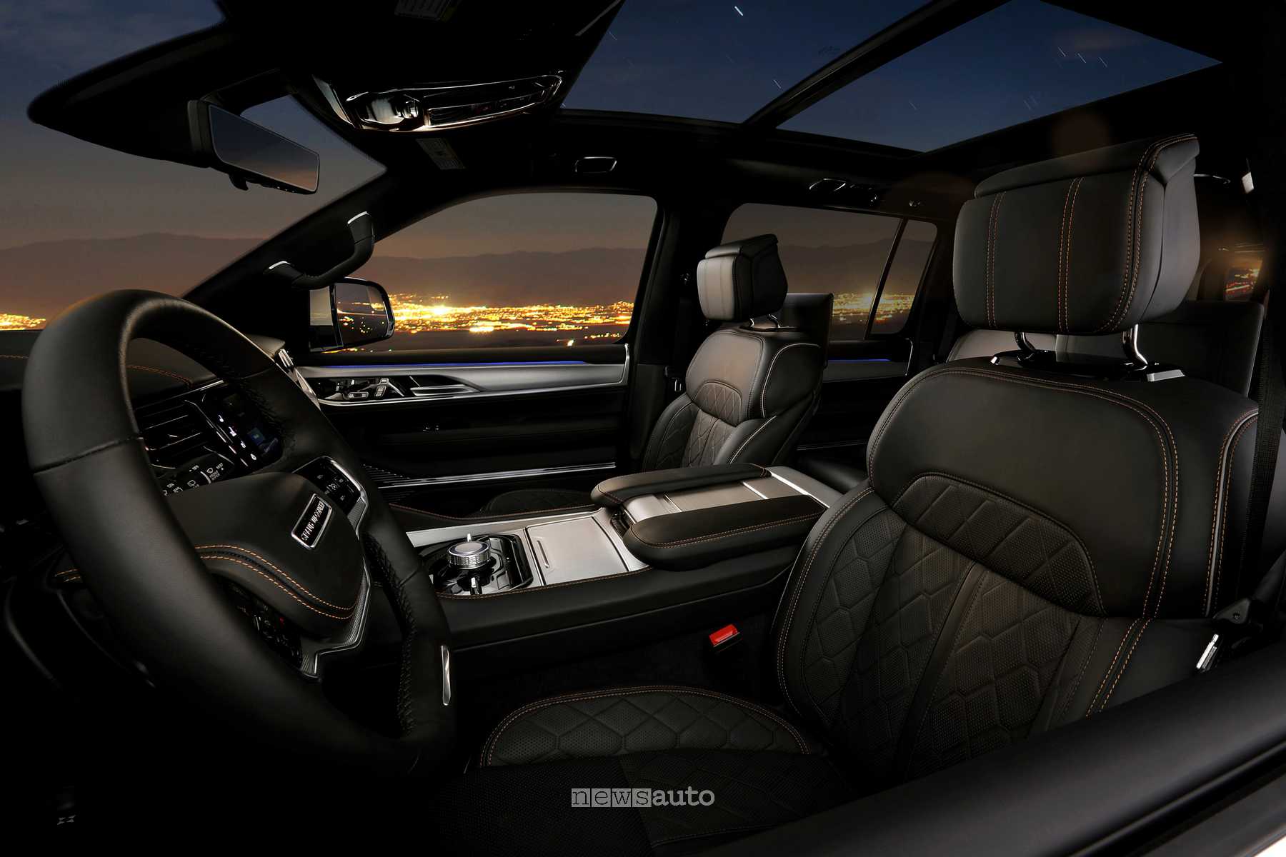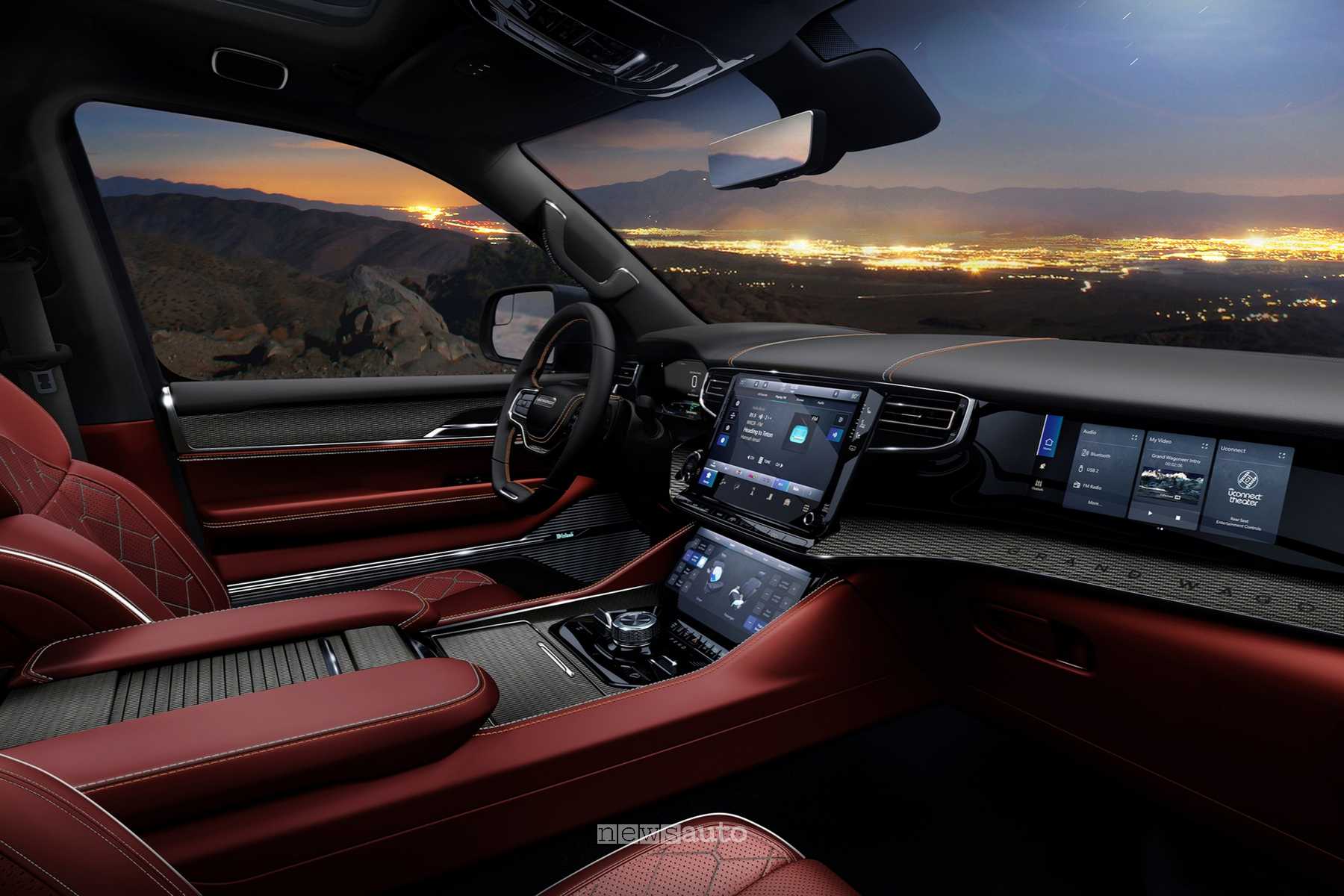La potenza complessiva del sistema raggiunge 647 CV, con trazione affidata esclusivamente ai motori elettrici. Le prestazioni sono da sportiva: la Grand Wagoneer REEV accelera da 0 a 100 km/h in circa 5 secondi e promette una autonomia complessiva superiore ai 680 km.