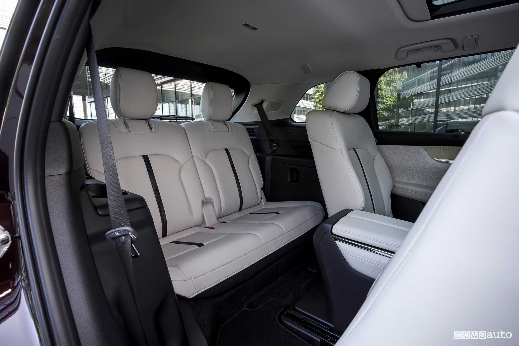 Il sistema di climatizzazione raggiunge tutte le file di sedili, con controlli indipendenti e pre-condizionamento sui modelli PHEV tramite batteria. Tutti i sedili hanno porte USB-C e prese di corrente, con opzione di alimentazione AC 1.500 W sui modelli PHEV. L’abitacolo può avere illuminazione ambientale e un grande tetto panoramico apribile elettricamente.