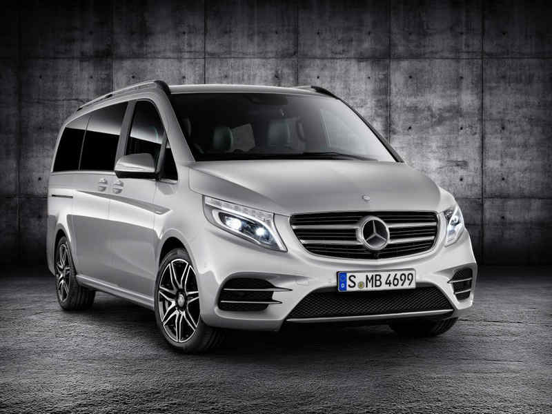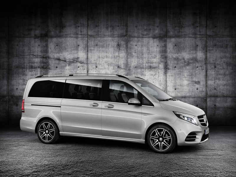 V-Class – V 250 d, Exterior, brilliant silver metallic, AMG Line – front and rear aprons, side sill panels, 19-inch light-alloy wheels and spoiler lip