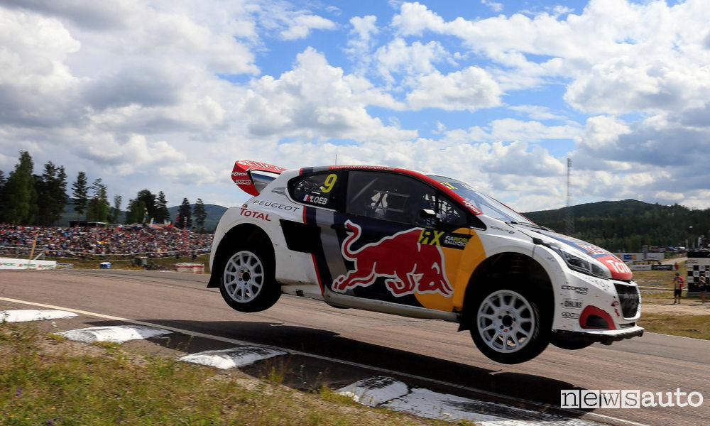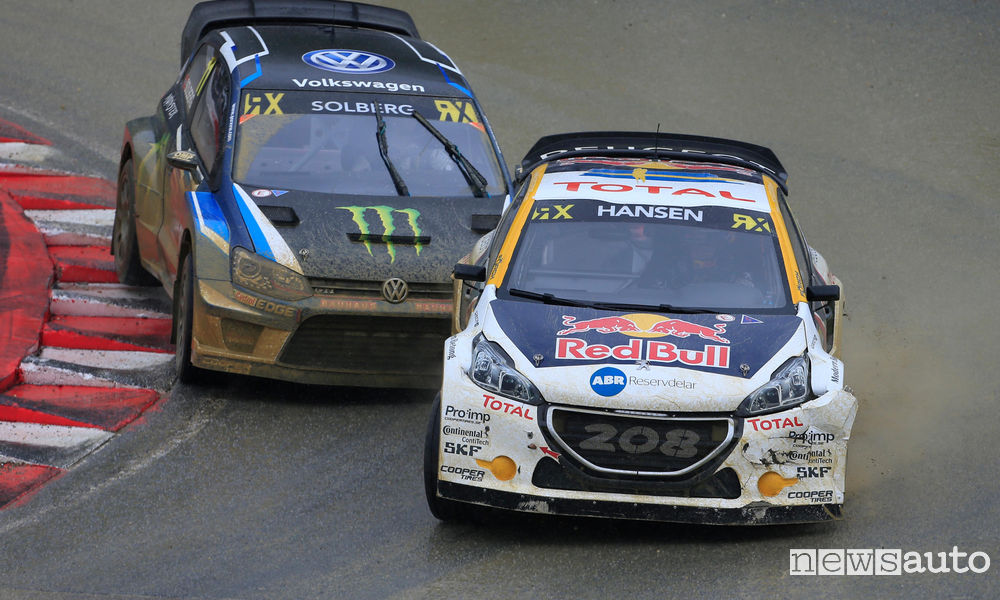 Timmy Hansen performs during Red Bull Team Peugeot Hansen photoshoot in Lydden Hill Circuit, UK, on March 20, 2017