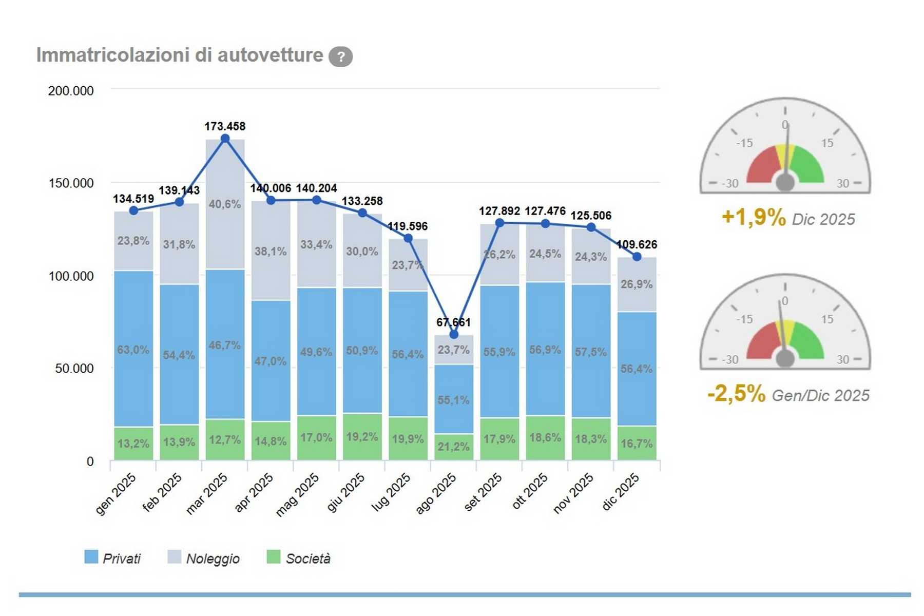 Quante auto sono state vendute dicembre 2025