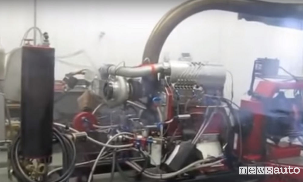Catastrofe alla sala prova con un motore turbo sovralimentato frenato al banco che improvvisamente subisce una grave avaria con esplosione,
