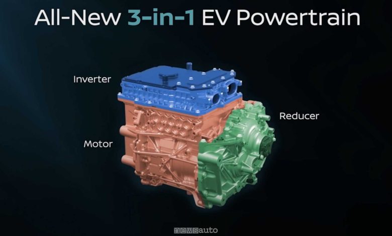 La nuova Nissan Leaf introduce il propulsore elettrico 3 in 1, più compatto del 10% e capace di erogare 160 kW (218 CV) e 355 Nm di coppia. Questo motore consente di spostare l’unità HVAC sotto il cofano, aumentando lo spazio interno. L’abitacolo è più silenzioso, fino a 2 decibel in meno a 50 km/h rispetto alla generazione precedente.