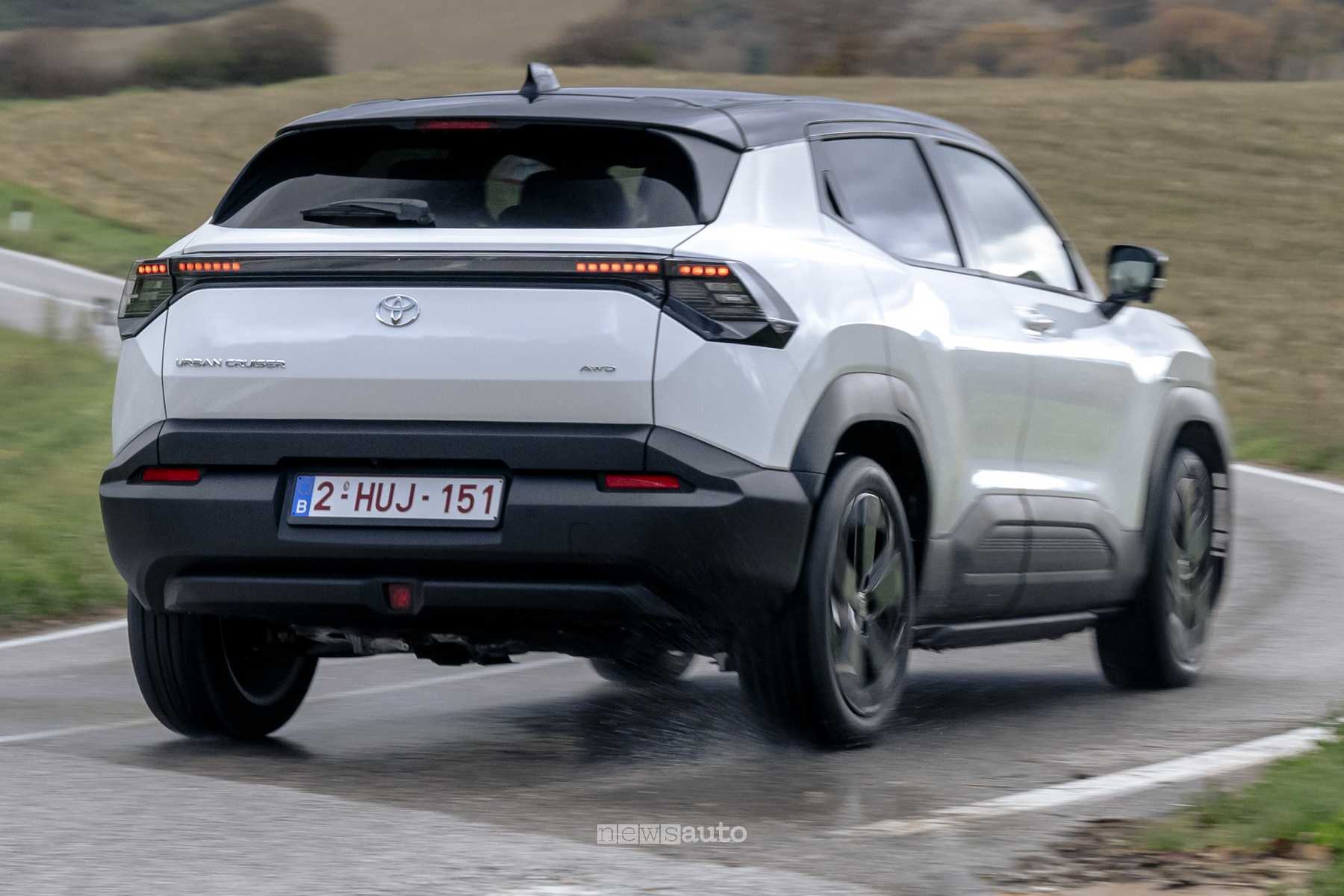 La Toyota Urban Cruiser, sviluppata su una piattaforma per auto elettriche, sarà disponibile con due powertrain: il primo con batteria da 49 kWh abbinata a un motore anteriore da 144 CV, e il secondo con batteria da 61 kWh, che offre la possibilità di scegliere tra un motore anteriore da 174 CV o una trazione integrale da 184 CV, con un motore posteriore da 65 CV.