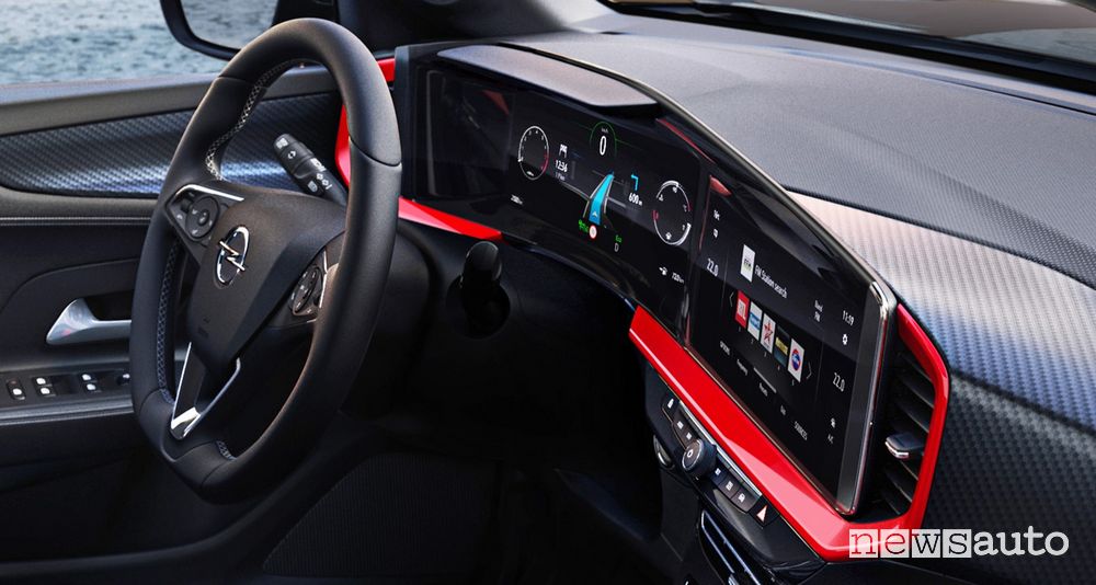 Novità di stile e tecnologia presente su tutte le Mokka è l’Opel Pure Panel che prende ispirazione dalla Concept car GTX. Si tratta di due schermi affiancati in plancia da 7″ ognuno oppure 12″ e 10″, dedicati alla strumentazione di bordo e all’infotainment. Questo si può comandare anche tramite i comandi vocali, ed è presente la compatibilità con gli smartphone tramite Android Auto e Apple CarPlay.
