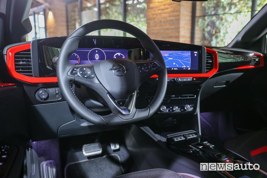 Novità di stile e tecnologia presente su tutte le Mokka è l’Opel Pure Panel che prende ispirazione dalla Concept car GTX. Si tratta di due schermi affiancati in plancia da 7″ ognuno oppure 12″ e 10″, dedicati alla strumentazione di bordo e all’infotainment. Questo si può comandare anche tramite i comandi vocali, ed è presente la compatibilità con gli smartphone tramite Android Auto e Apple CarPlay.