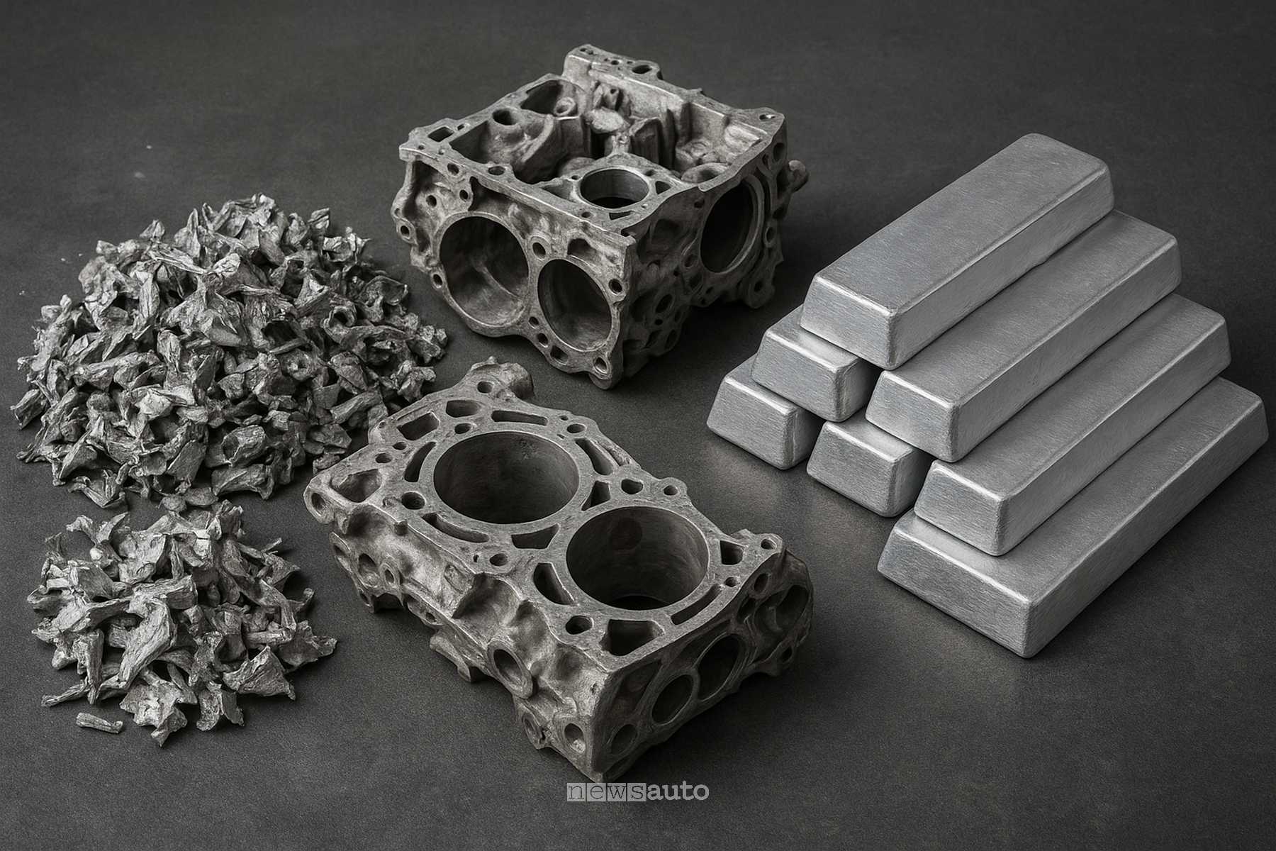 L’alluminio da componenti come blocchi motore, testate, cambi e radiatori (che spesso sono leghe di rame e alluminio) viene recuperato attraverso diverse fasi: