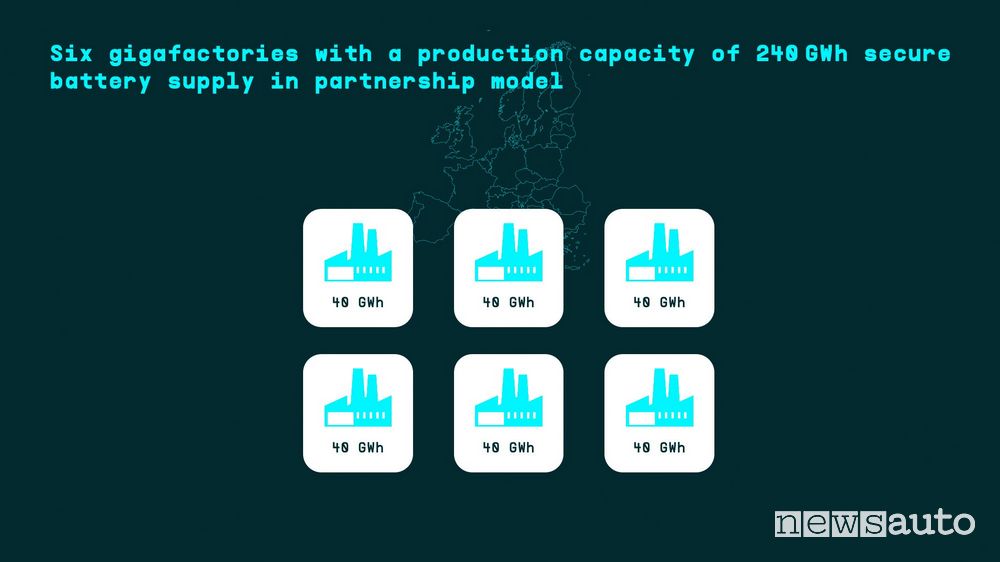 Entrambe le gigafactory saranno alimentate con energia proveniente da fonti rinnovabili. Potenziali location e partner per le altre fabbriche sono al momento in fase di valutazione.