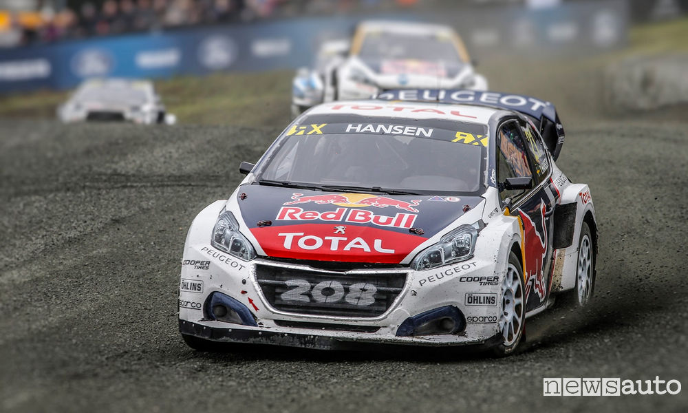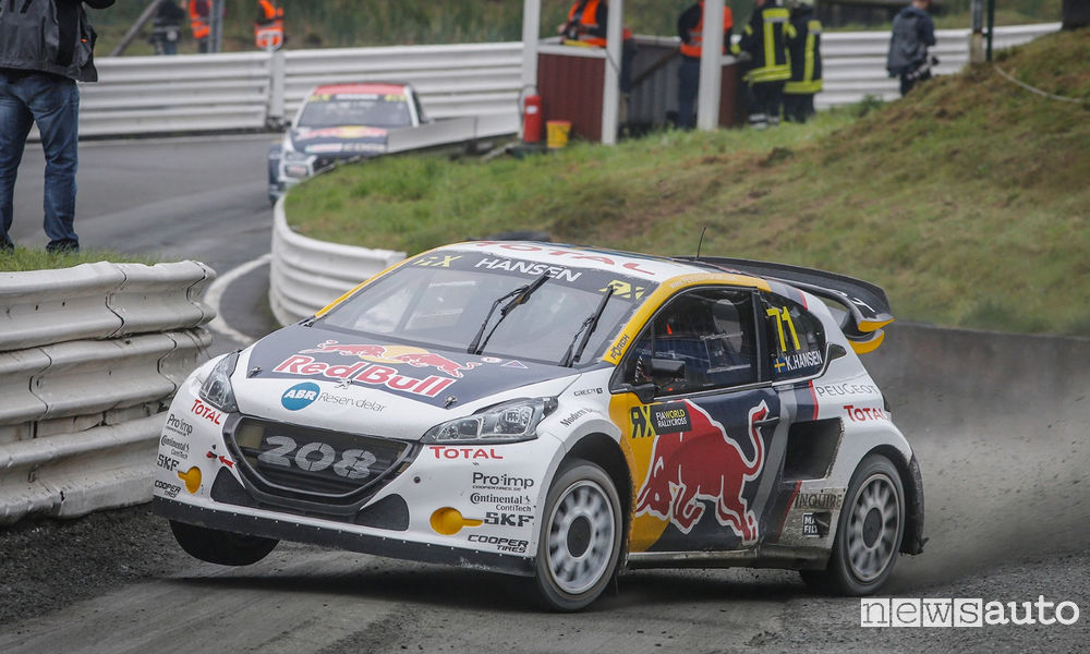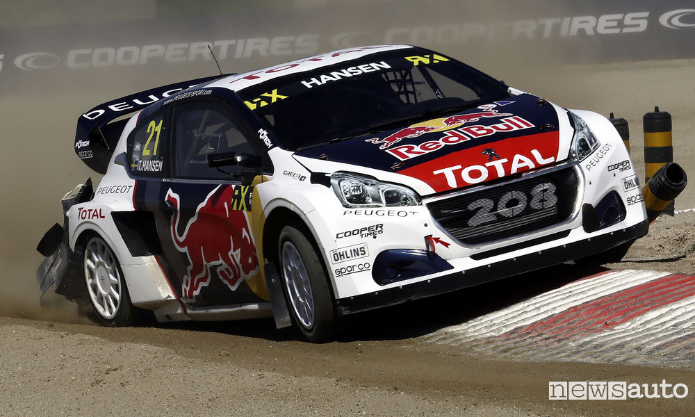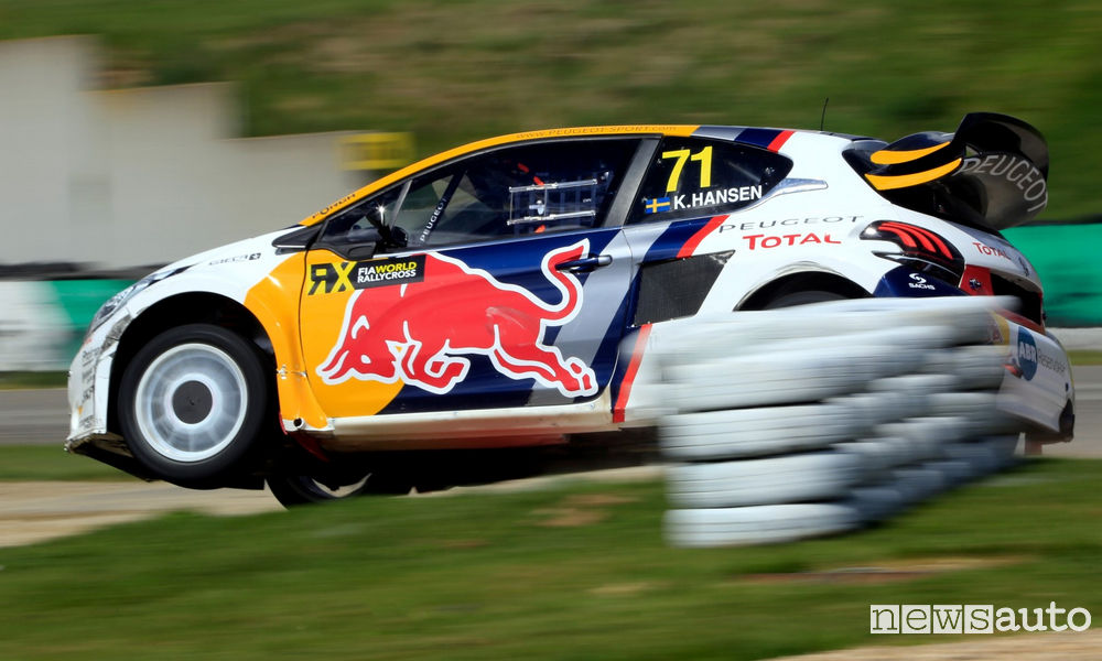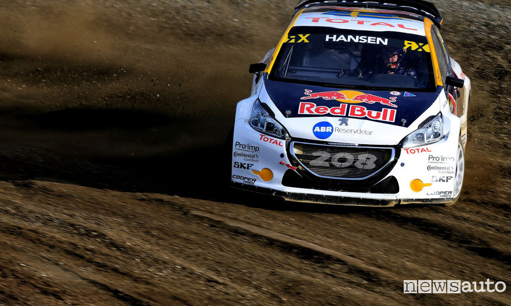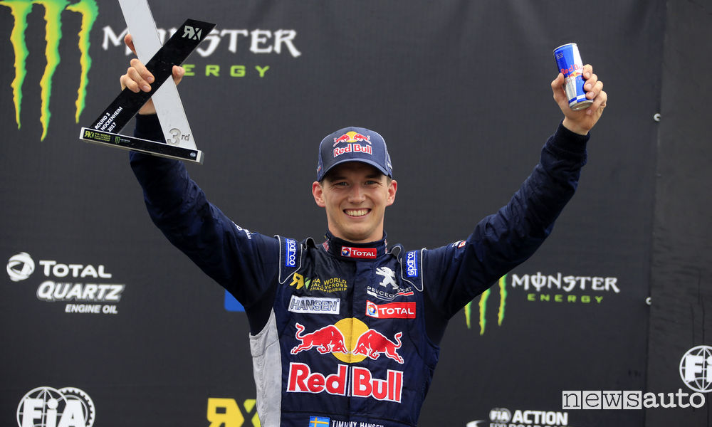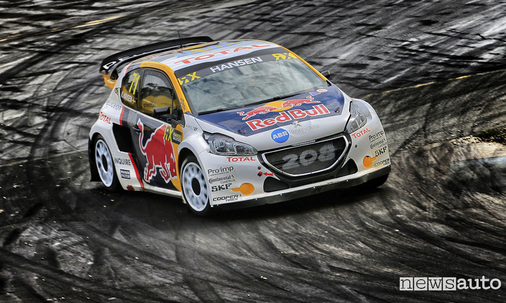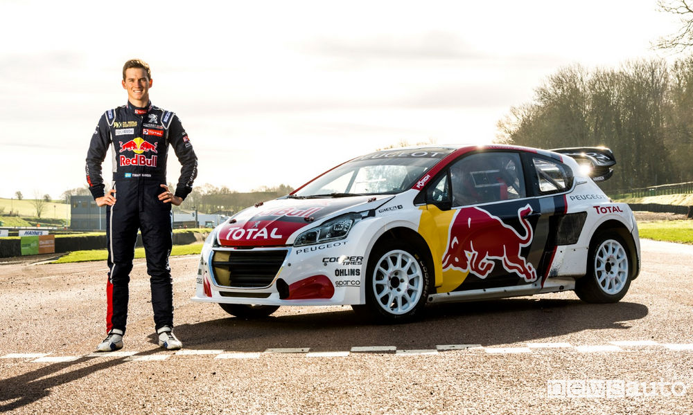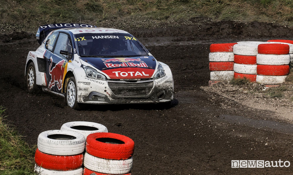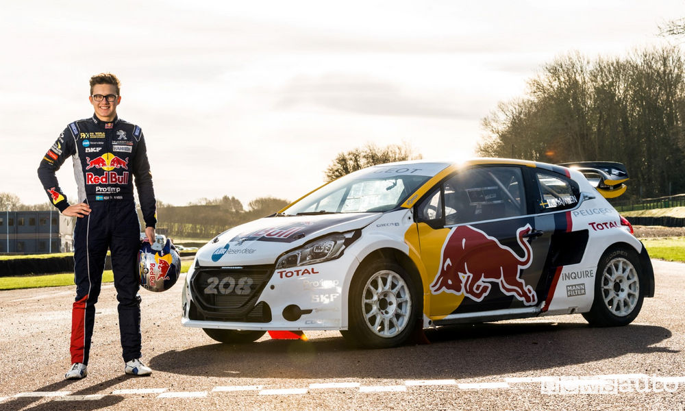 Timmy Hansen performs during Red Bull Team Peugeot Hansen photoshoot in Lydden Hill Circuit, UK, on March 20, 2017