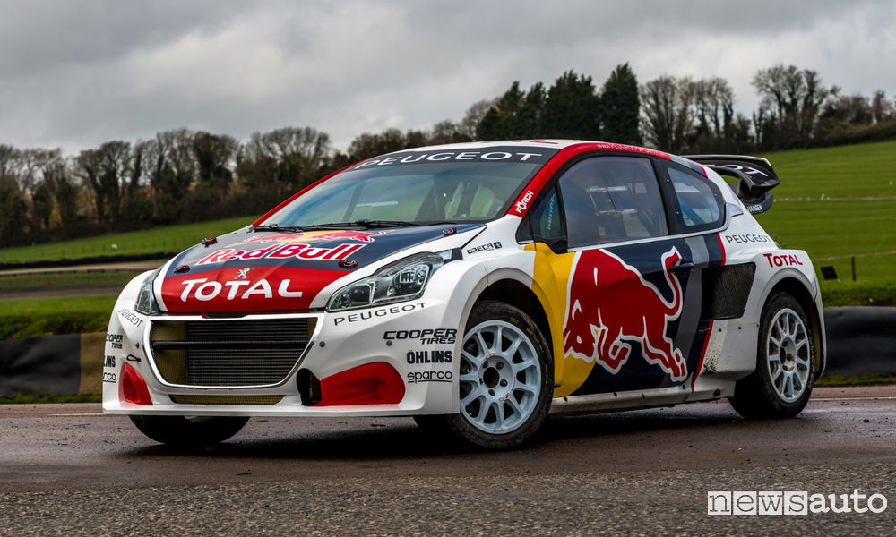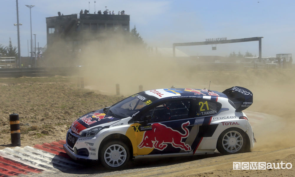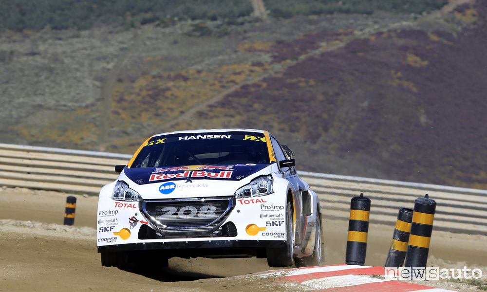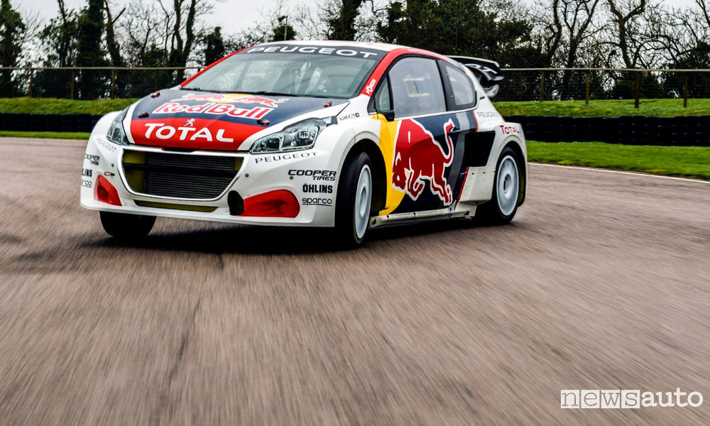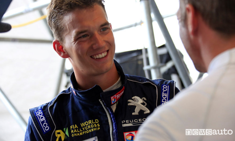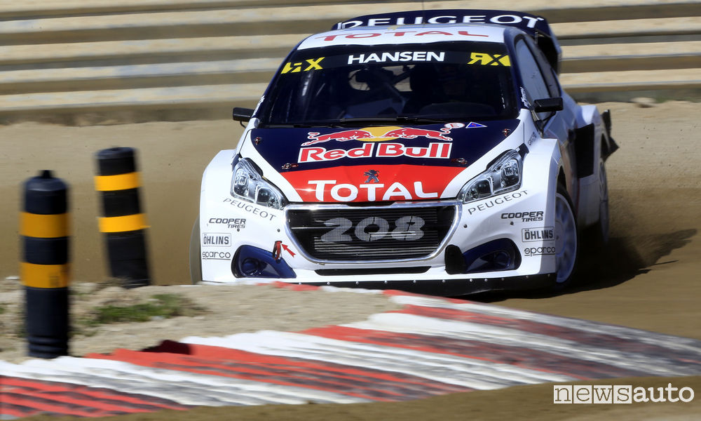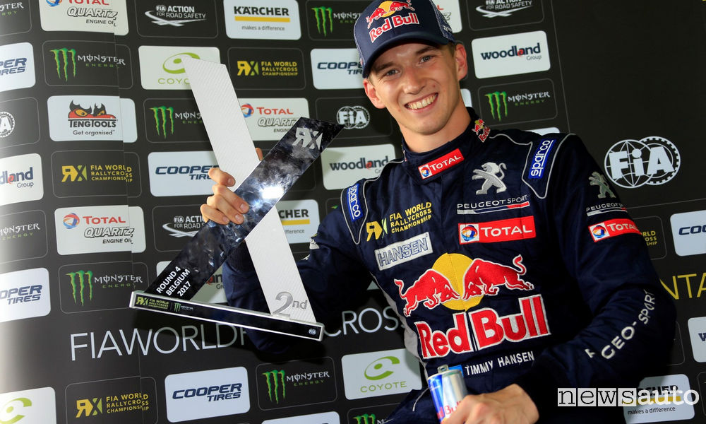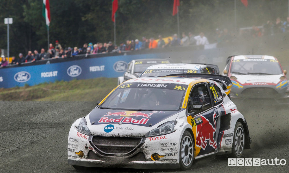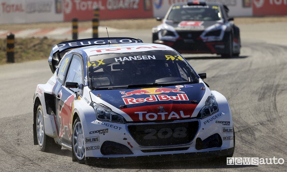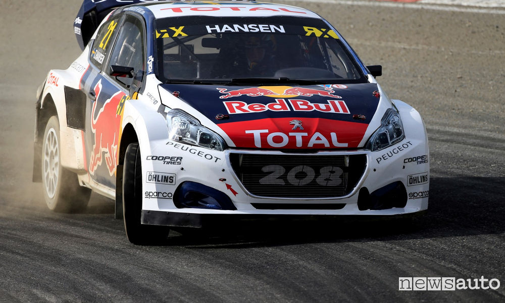 Timmy Hansen performs during Red Bull Team Peugeot Hansen photoshoot in Lydden Hill Circuit, UK, on March 20, 2017
