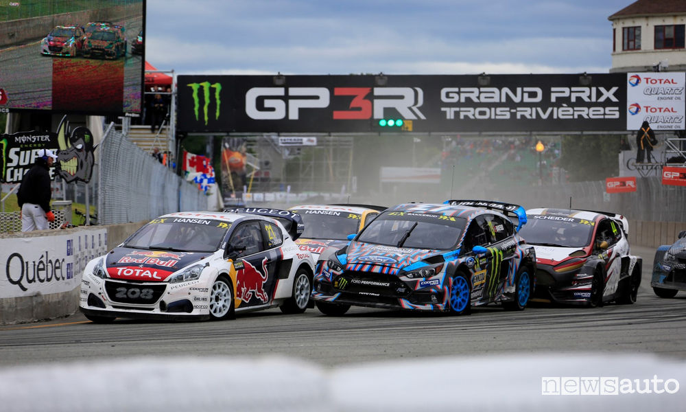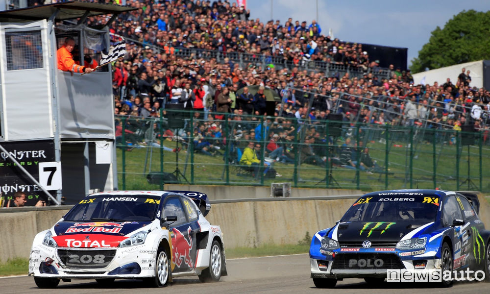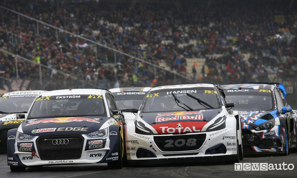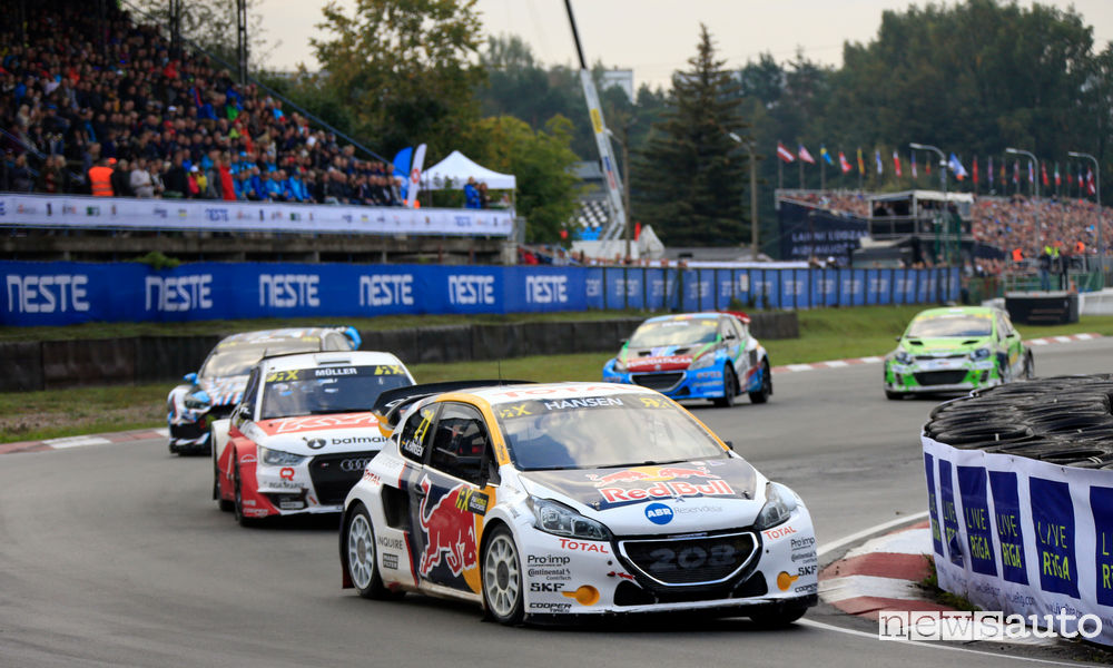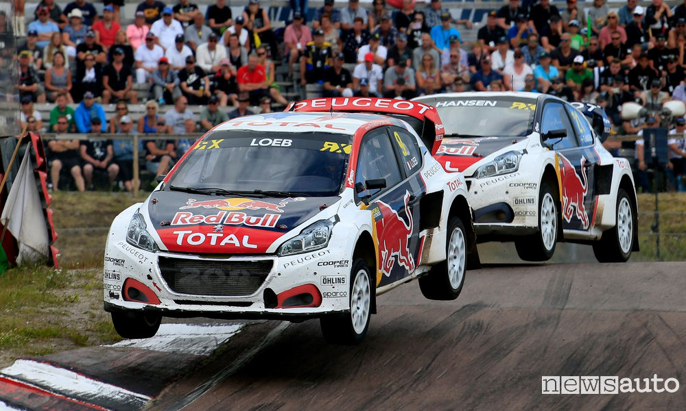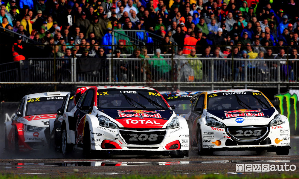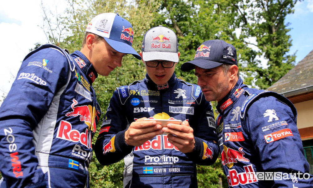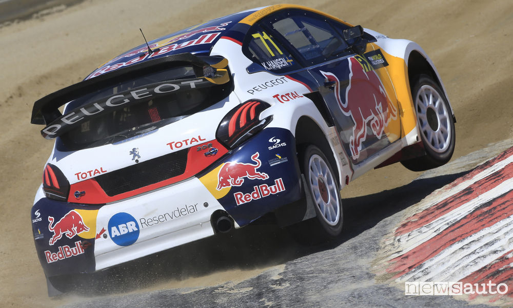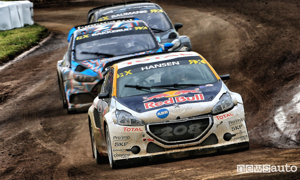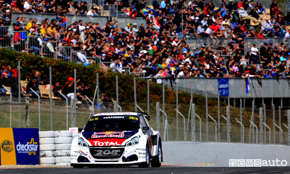Timmy Hansen performs during Red Bull Team Peugeot Hansen photoshoot in Lydden Hill Circuit, UK, on March 20, 2017