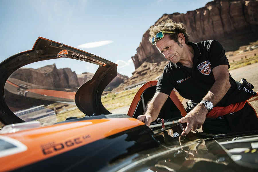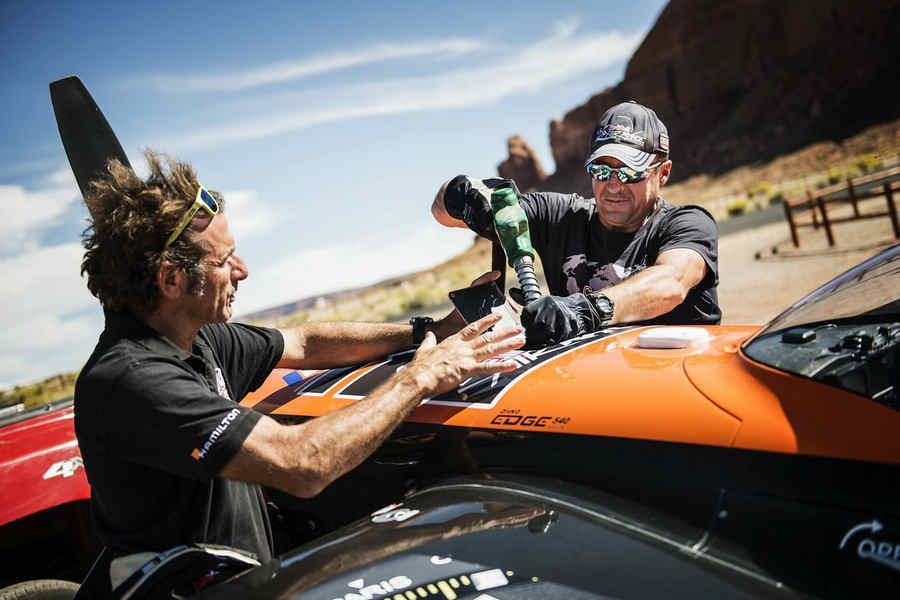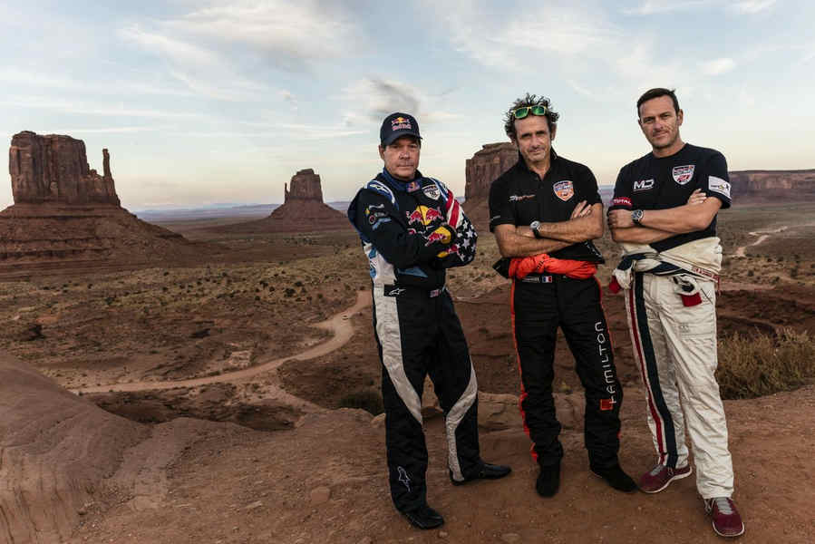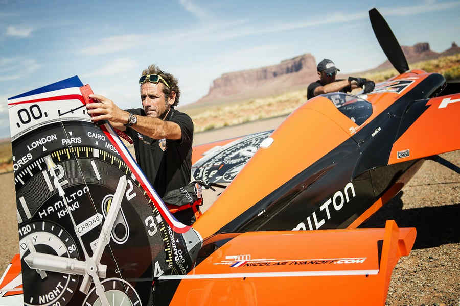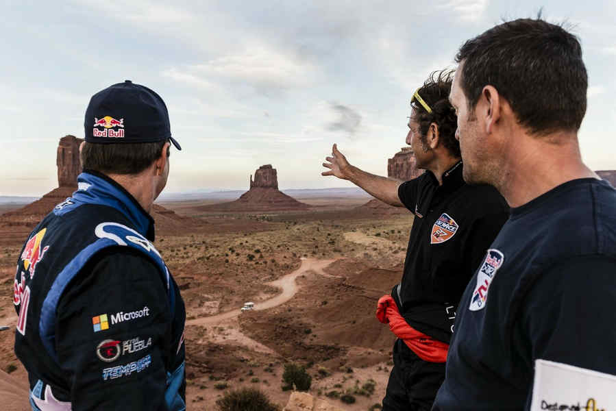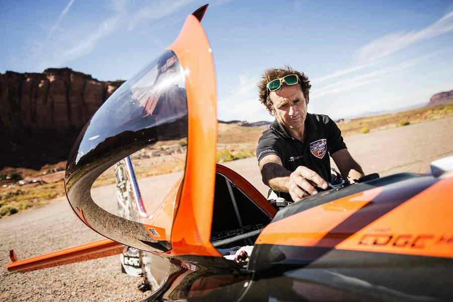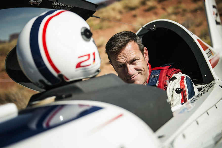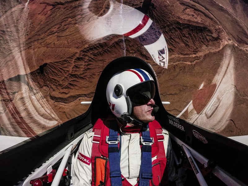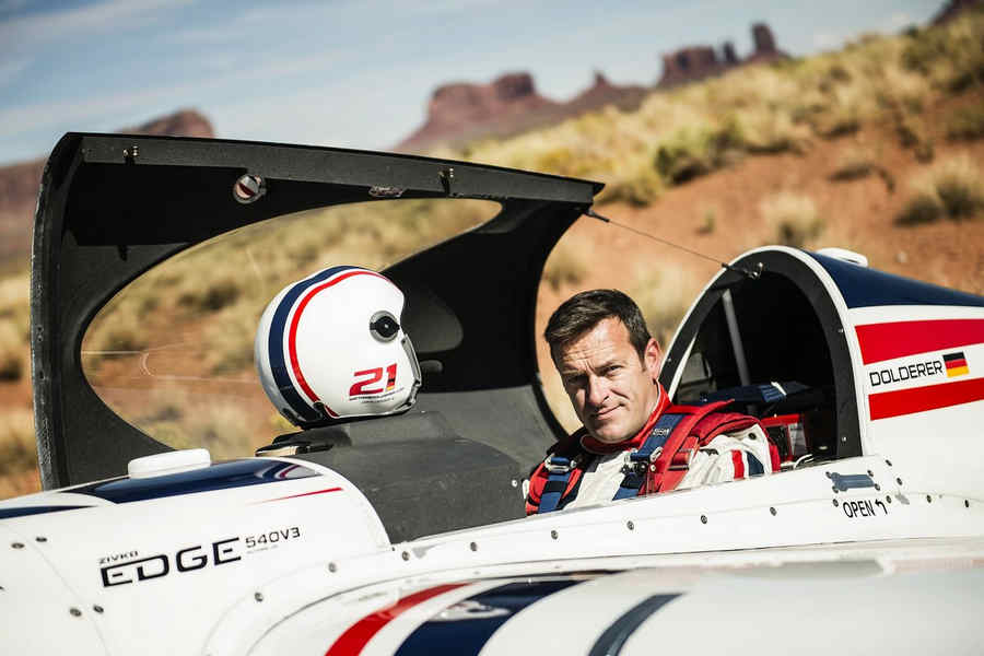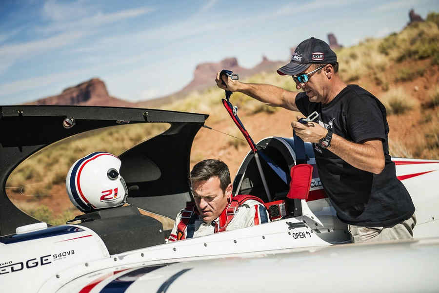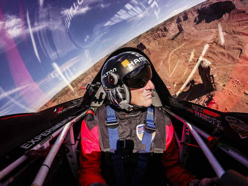 Kirby Chambliss of the United States leads Nicolas Ivanoff of France and Matthias Dolderer of Germany over the Monument Valley Navajo Tribal Park in Utah, United States on September 29, 2015. The pilots are ferrying their race planes to the season final of the Red Bull Air Race World Championship held in Las Veags on October 18.