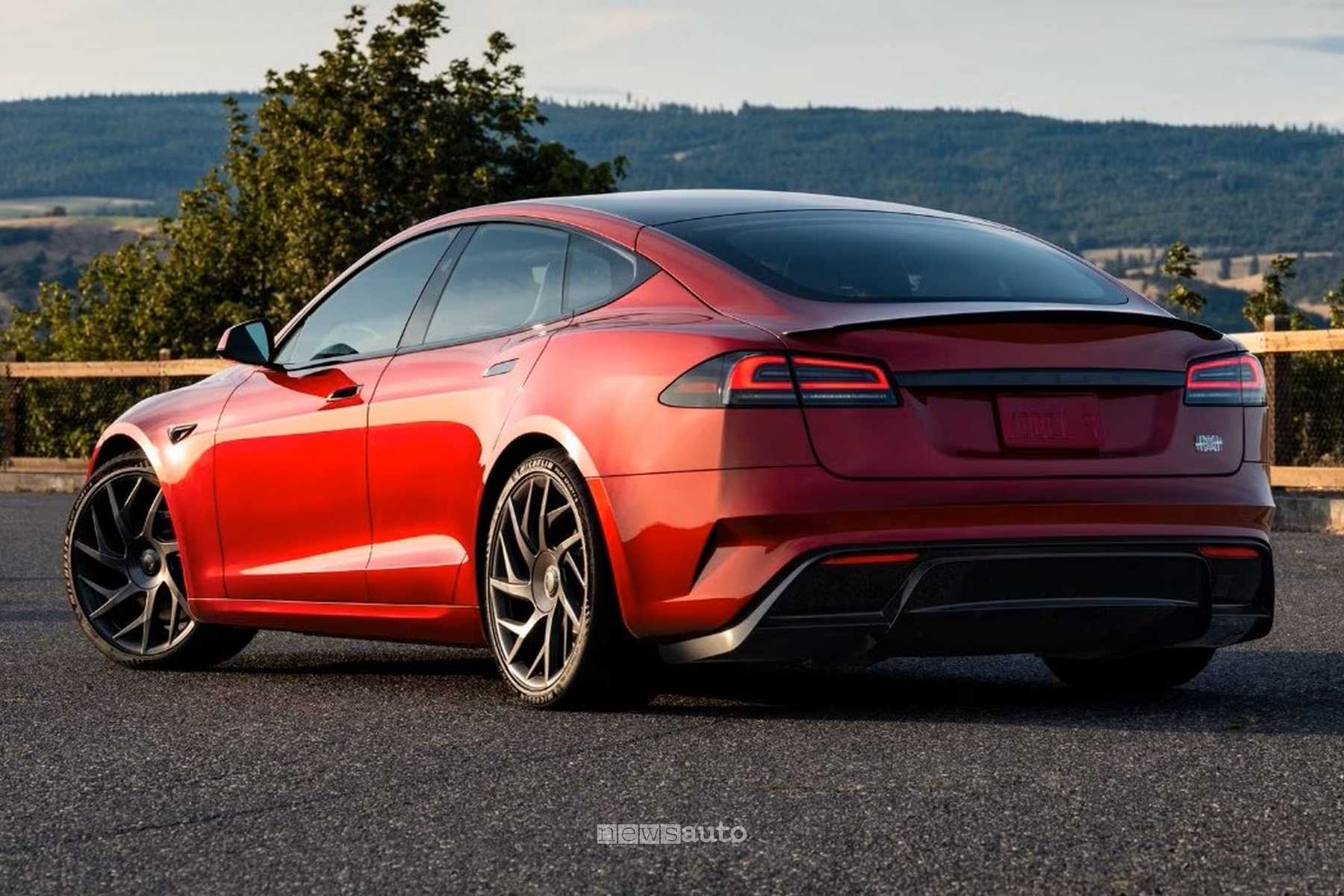 La versione Plaid della Model S, la più estrema della gamma con 1.020 cavalli, non resta certo indietro. Riceve nuovi paraurti anteriore e posteriore, uno splitter e uno spoiler in fibra di carbonio, oltre a un diffusore posteriore rivisto per migliorare ulteriormente l’aerodinamica.