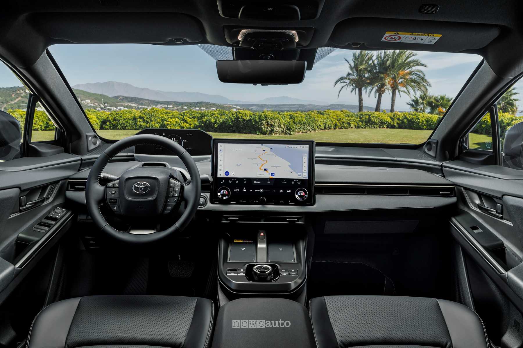 L’allestimento base include un motore anteriore da 167 CV, cerchi da 18”, luci full LED, climatizzatore bi-zona, display centrale da 14″, strumentazione digitale, prese USB-C, sedili anteriori riscaldabili, assistente vocale, ricarica wireless, telecamera posteriore, sensori di parcheggio, sistemi Toyota Safety Sense, navigatore, aggiornamenti OTA, pompa di calore e cavi di ricarica.