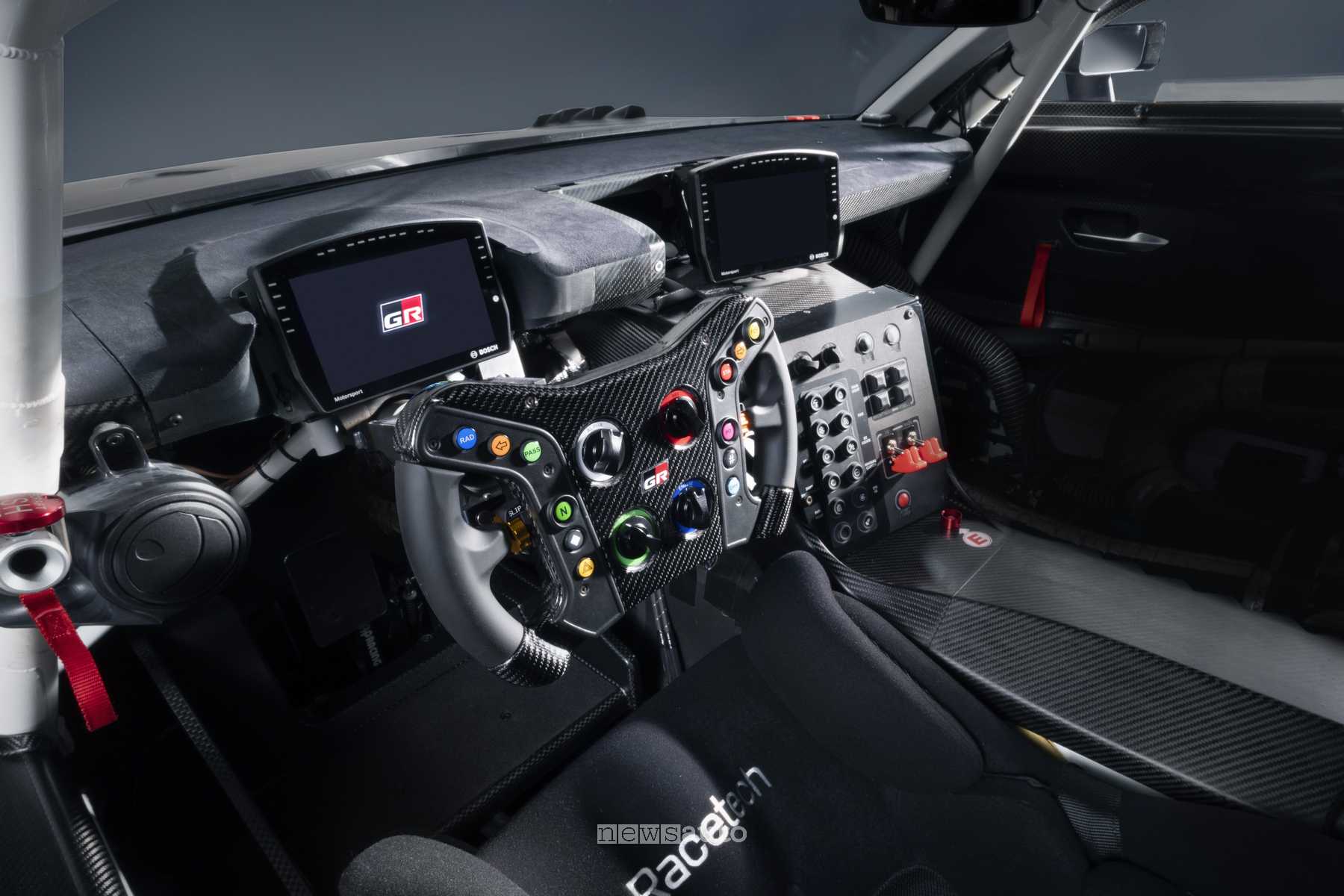 L’impianto frenante impiega dischi Brembo in carbonio, mentre il controllo di stabilità offre più livelli di regolazione del sistema frenante, una soluzione derivata dall’esperienza nelle competizioni endurance. Telaio e sospensioni sono stati progettati per condividere numerosi componenti con la GR GT3.