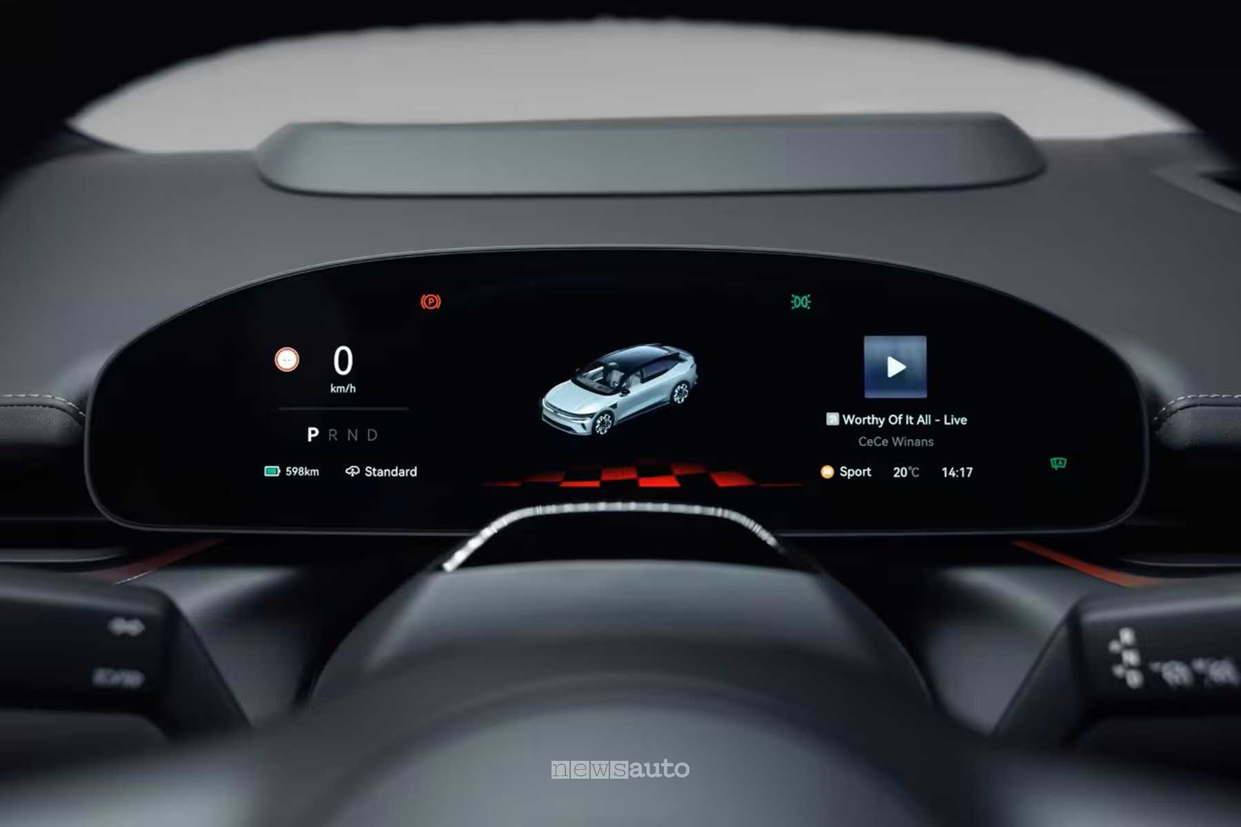L’abitacolo della Zeekr 7GT è orientato alla tecnologia e alla connettività: spiccano lo schermo centrale da 15 pollici per il sistema multimediale, il cruscotto digitale da 13 pollici e un head-up display con realtà aumentata da 35,5 pollici che proietta le informazioni di guida sul parabrezza.